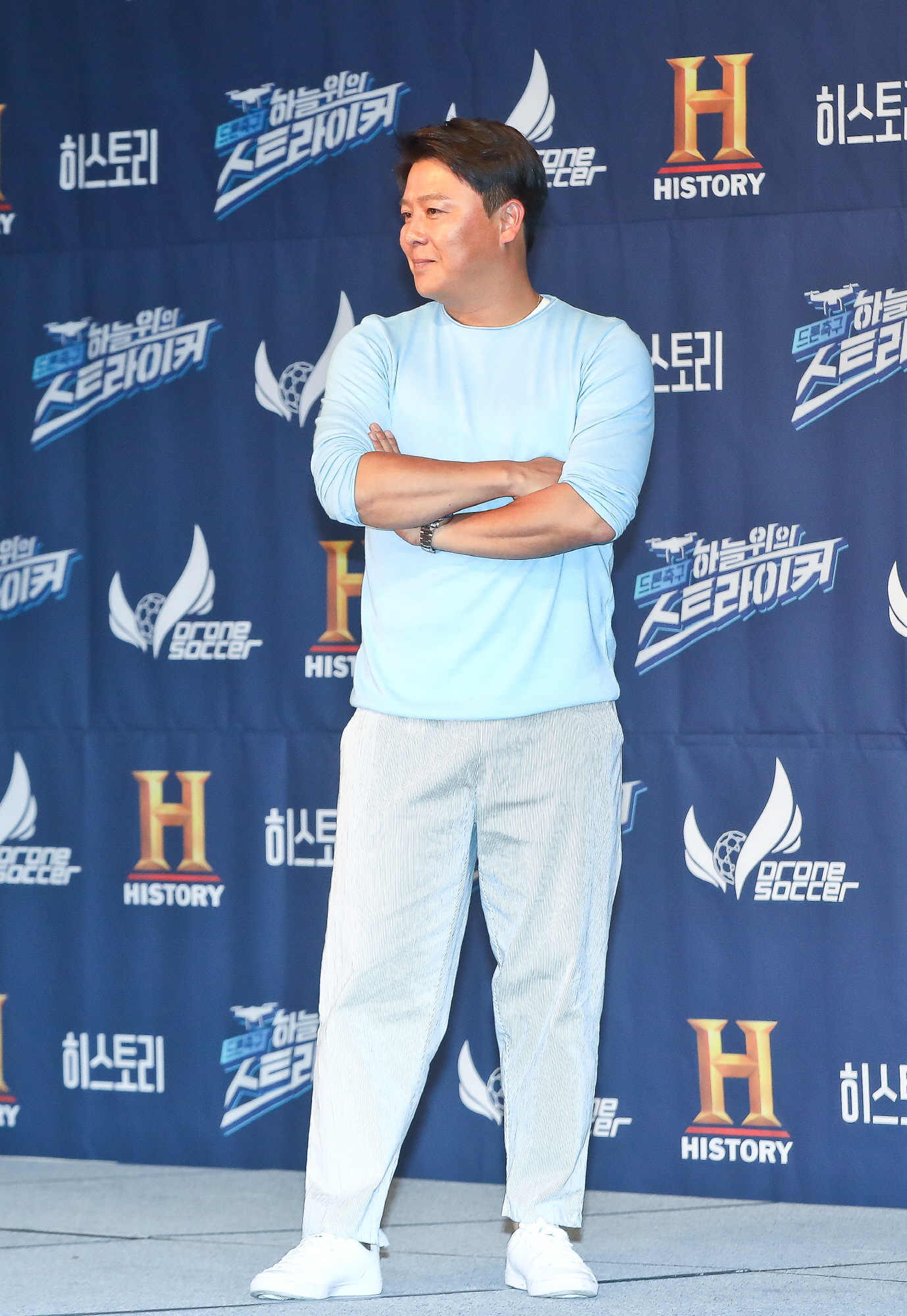 [서울=eoimage] 고성준 기자 = 21일 오전 서울 마포구 가든호텔에서 열린 히스토리 체널 새 예능프로그램 '드론 축구: 하늘 위의 스트라이커' 제작발표회에 가수 이재훈이 참석하고 있다. 2019.5.21