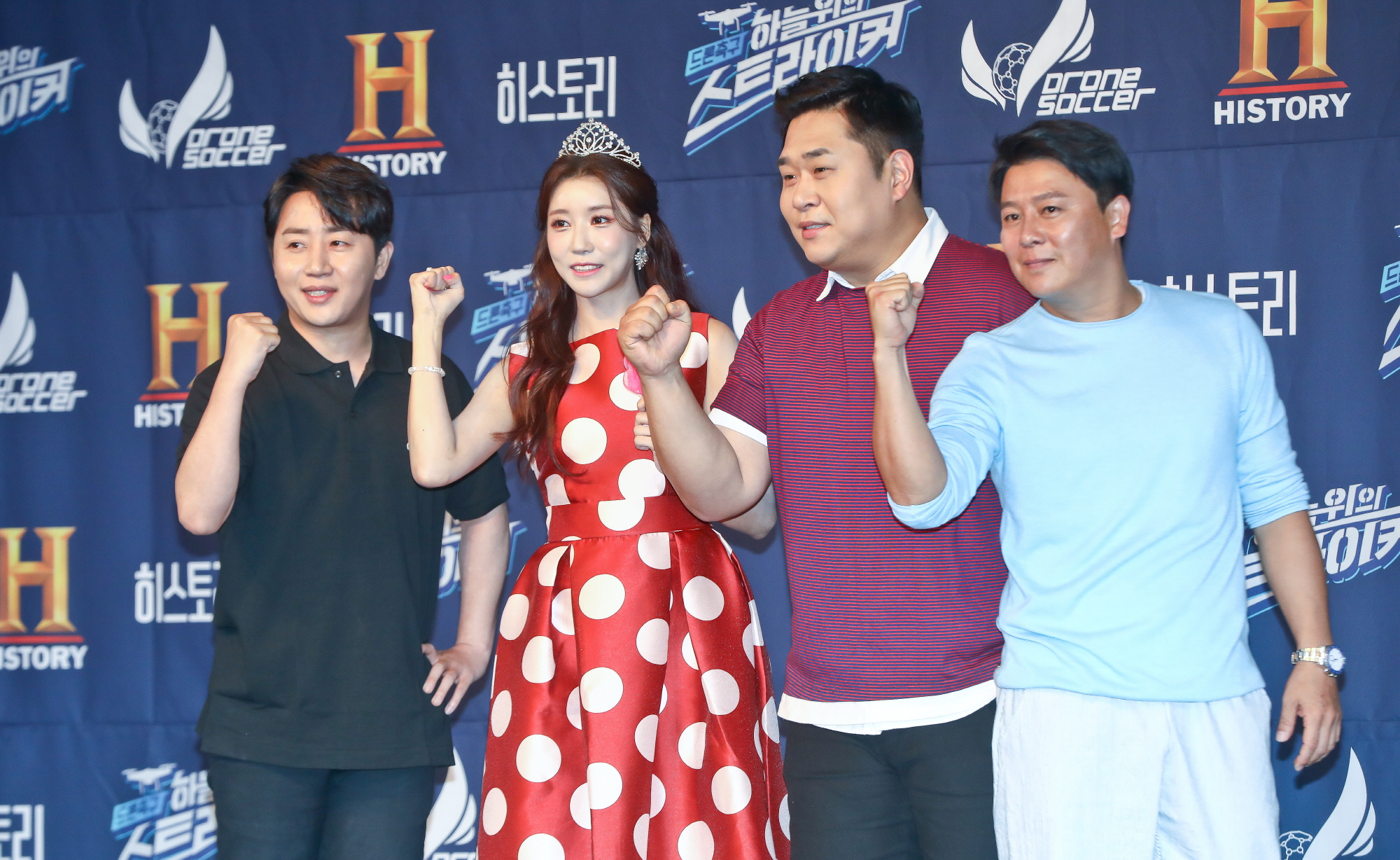 [서울=eoimage] 고성준 기자 = 21일 오전 서울 마포구 가든호텔에서 열린 히스토리 체널 새 예능프로그램 '드론 축구: 하늘 위의 스트라이커' 제작발표회에 가수 이재훈, 방송인 홍진호, 가수 두리, 개그맨 문세윤이 참석하고 있다. 2019.5.21