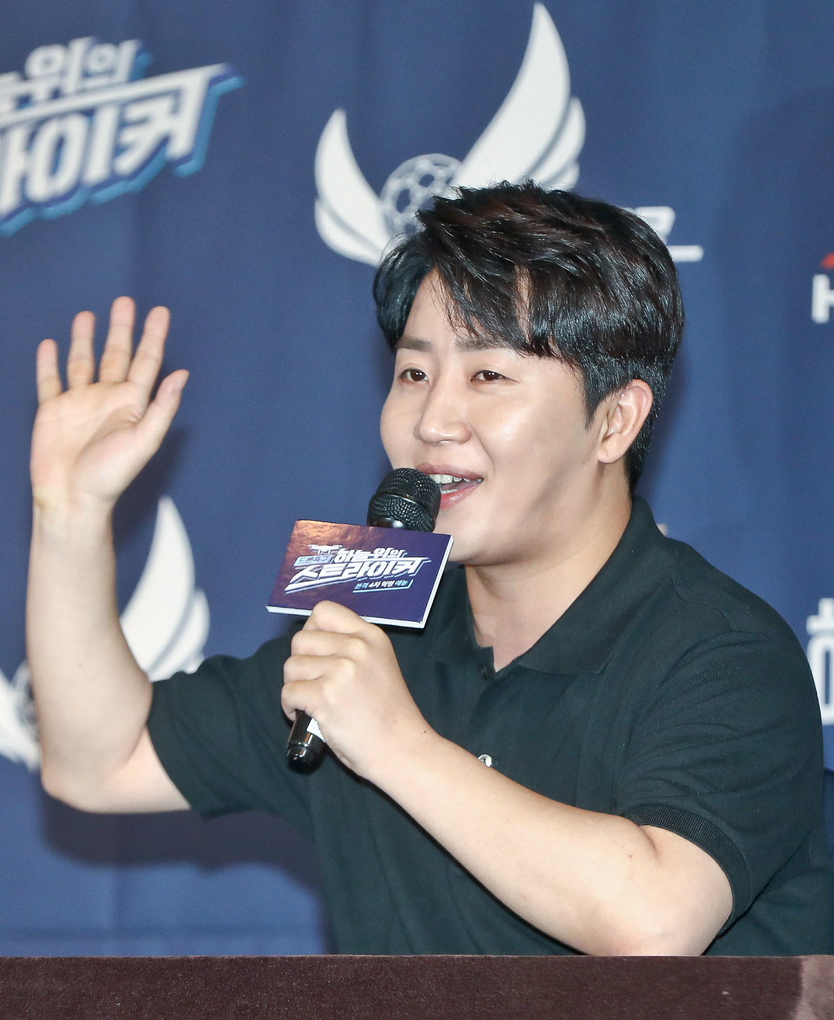 [서울=eoimage] 고성준 기자 = 21일 오전 서울 마포구 가든호텔에서 열린 히스토리 체널 새 예능프로그램 '드론 축구: 하늘 위의 스트라이커' 제작발표회에 가수 이재훈이 참석하고 있다. 2019.5.21