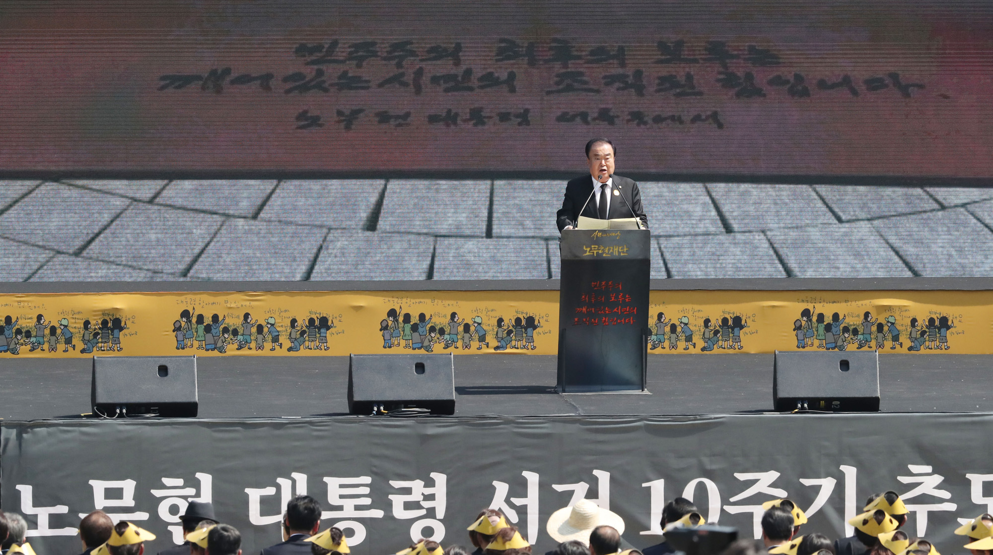 23일 경남 김해 봉하마을에서 열린 故 노무현 대통령 10주기 추모식에서 문희상 국회의장이 추모사를 하고 있다. / 2019.05.23 경향신문 권도현20190523
