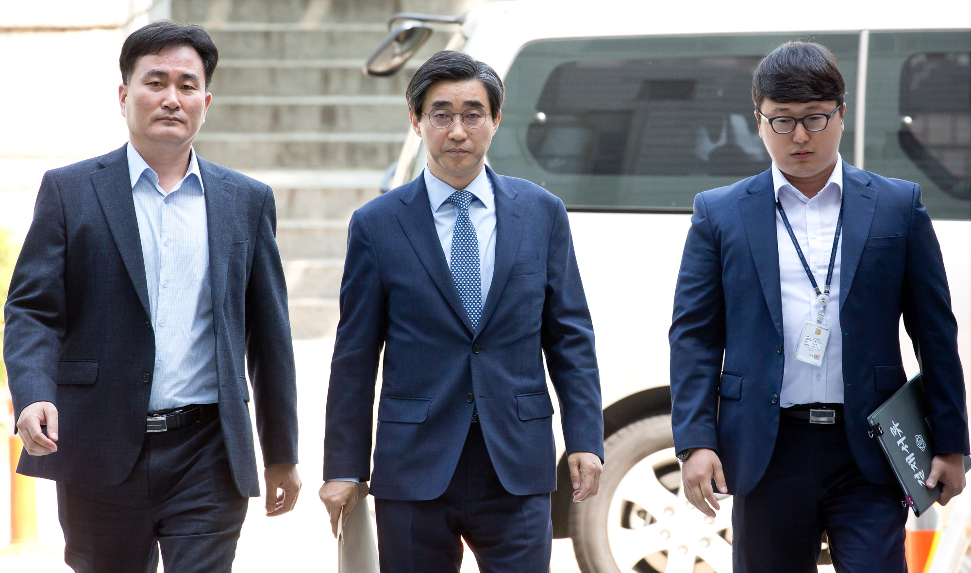 [Eoimage=서울] 임준선 기자 = 삼성바이오로직스 분식회계 의혹과 증거인멸 지시 혐의를 받고 있는 박문호 삼성전자 부사장이 영장심사를 받기 위해 24일 오전 서울 서초동 서울중앙지법으로 출석하고 있다. (사진 사용시 이름노출 자제 및 얼굴 필히 모자이크 요망.) 2019.05.24. eomaster@eoimage.com |