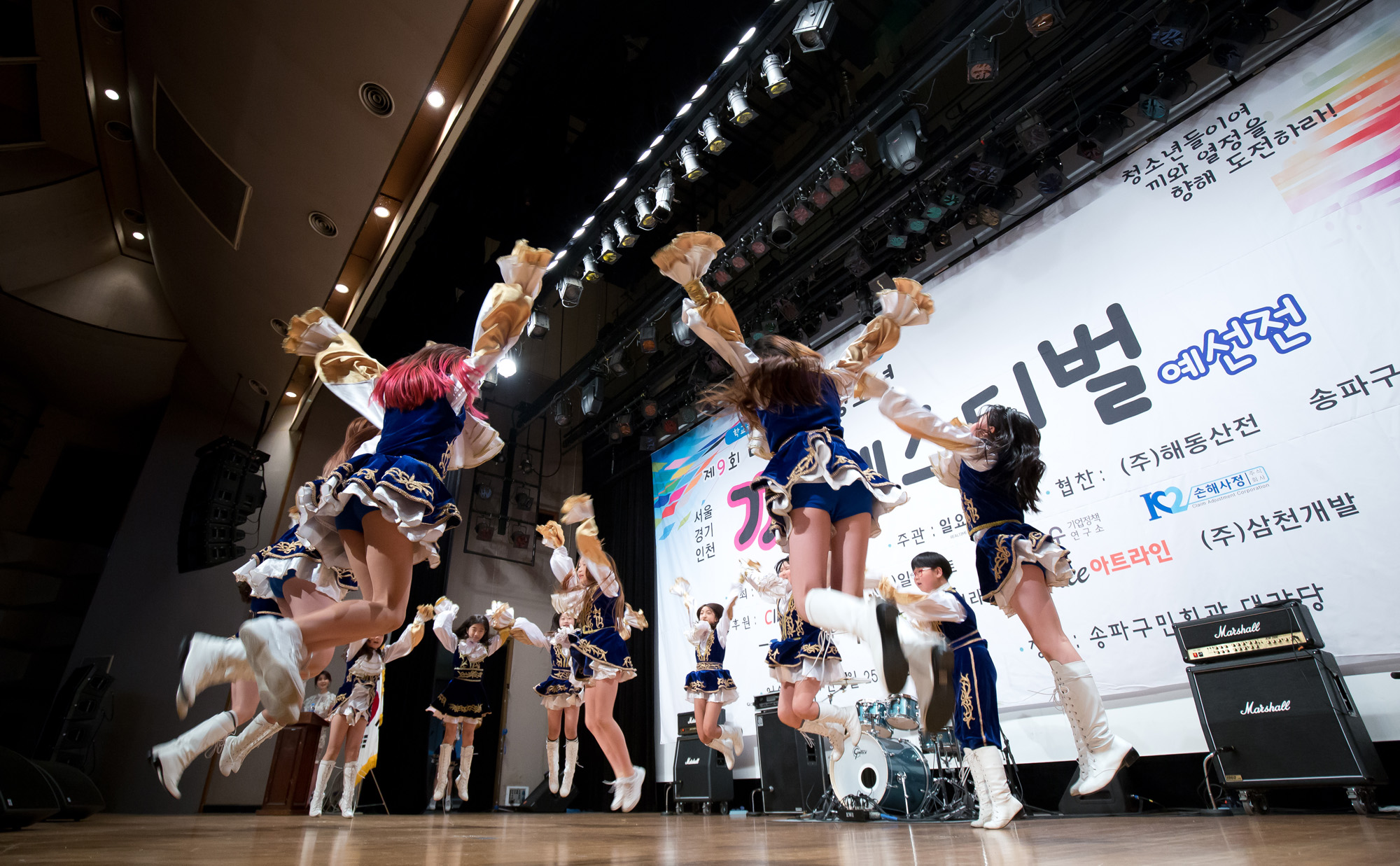 [eoimage=서울] 임준선기자 = ‘제9회 대한민국 청소년 끼 페스티벌’ 서울· 경기 ·인천 예선전이 25일 서울 송파구민회관에서 초·중·고교 60여개팀이 참가한 가운데 댄스, 노래,밴드,국악, 치어리딩 등 다양한 부문으로 나뉘어 경연이 펼쳐지고 있다. 사진은 초중등부 경연이 펼쳐지고 있다. 2019.5.25.eomaster@eoimage.com |