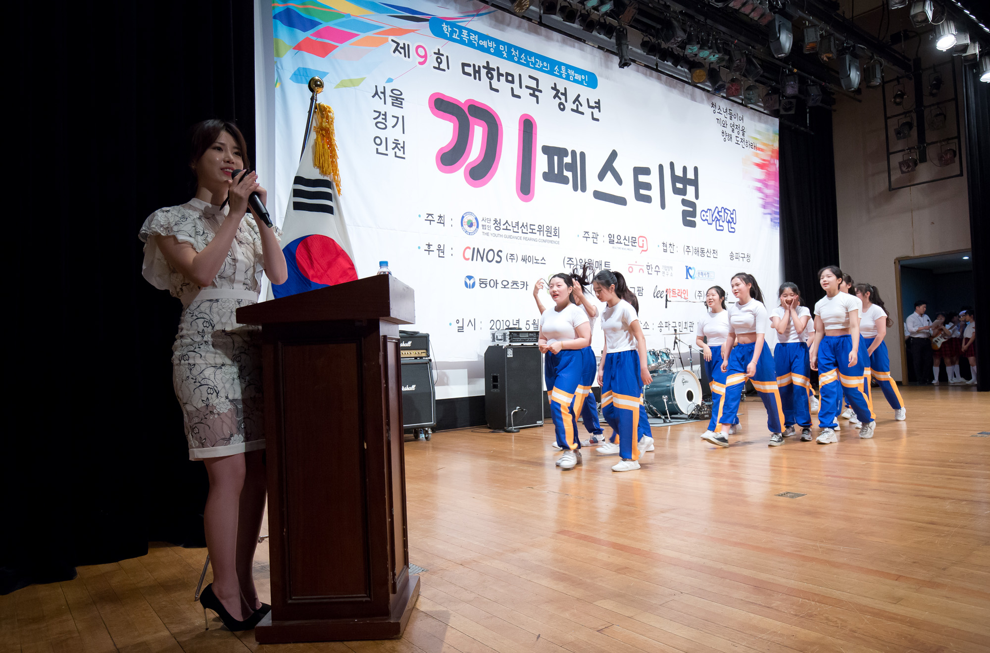 [eoimage=서울] 임준선기자 = ‘제9회 대한민국 청소년 끼 페스티벌’ 서울· 경기 ·인천 예선전이 25일 서울 송파구민회관에서 초·중·고교 60여개팀이 참가한 가운데 댄스, 노래,밴드,국악, 치어리딩 등 다양한 부문으로 나뉘어 경연이 펼쳐지고 있다. 사진은 초중등부 경연이 펼쳐지고 있다. 2019.5.25.eomaster@eoimage.com |