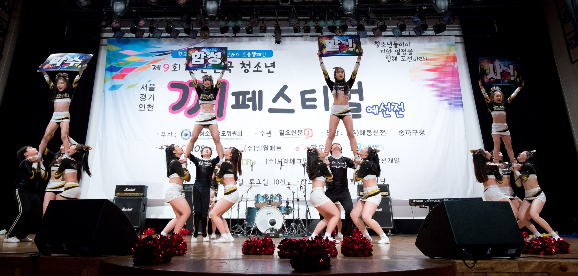 [eoimage=서울] 임준선기자 = ‘제9회 대한민국 청소년 끼 페스티벌’ 서울· 경기 ·인천 예선전이 25일 서울 송파구민회관에서 초·중·고교 60여개팀이 참가한 가운데 댄스, 노래,밴드,국악, 치어리딩 등 다양한 부문으로 나뉘어 경연이 펼쳐지고 있다.사진은 고등부 경연. 2019.5.25.eomaster@eoimage.com |