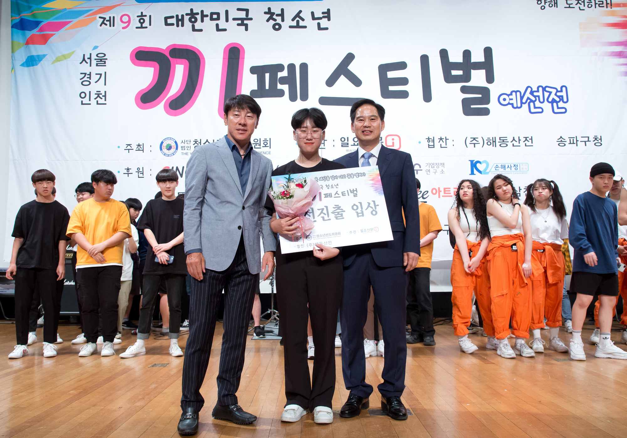 [eoimage=서울] 임준선기자 = ‘제9회 대한민국 청소년 끼 페스티벌’ 서울· 경기 ·인천 예선전이 25일 서울 송파구민회관에서 초·중·고교 60여개팀이 참가한 가운데 댄스, 노래,밴드,국악, 치어리딩 등 다양한 부문으로 나뉘어 경연이 펼쳐지고 있다. 사진은 고등부 시상식. 2019.5.25.eomaster@eoimage.com |