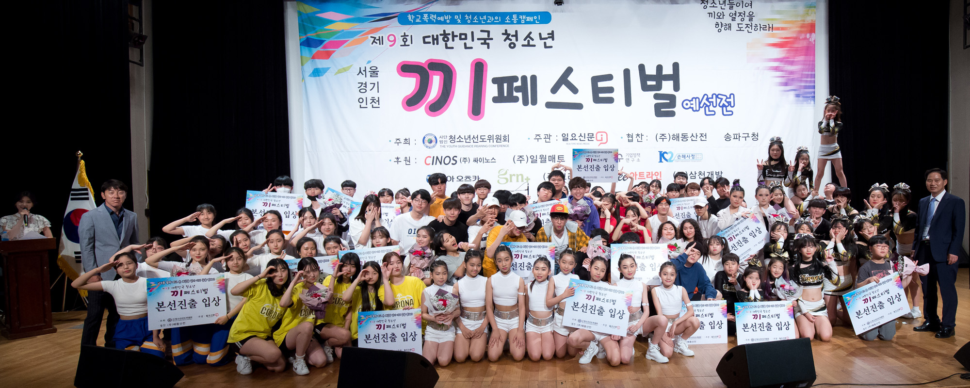 [eoimage=서울] 임준선기자 = ‘제9회 대한민국 청소년 끼 페스티벌’ 서울· 경기 ·인천 예선전이 25일 서울 송파구민회관에서 초·중·고교 60여개팀이 참가한 가운데 댄스, 노래,밴드,국악, 치어리딩 등 다양한 부문으로 나뉘어 경연이 펼쳐지고 있다.사진은 초중등부 고등부 수상자 단체사진. 2019.5.25.eomaster@eoimage.com |