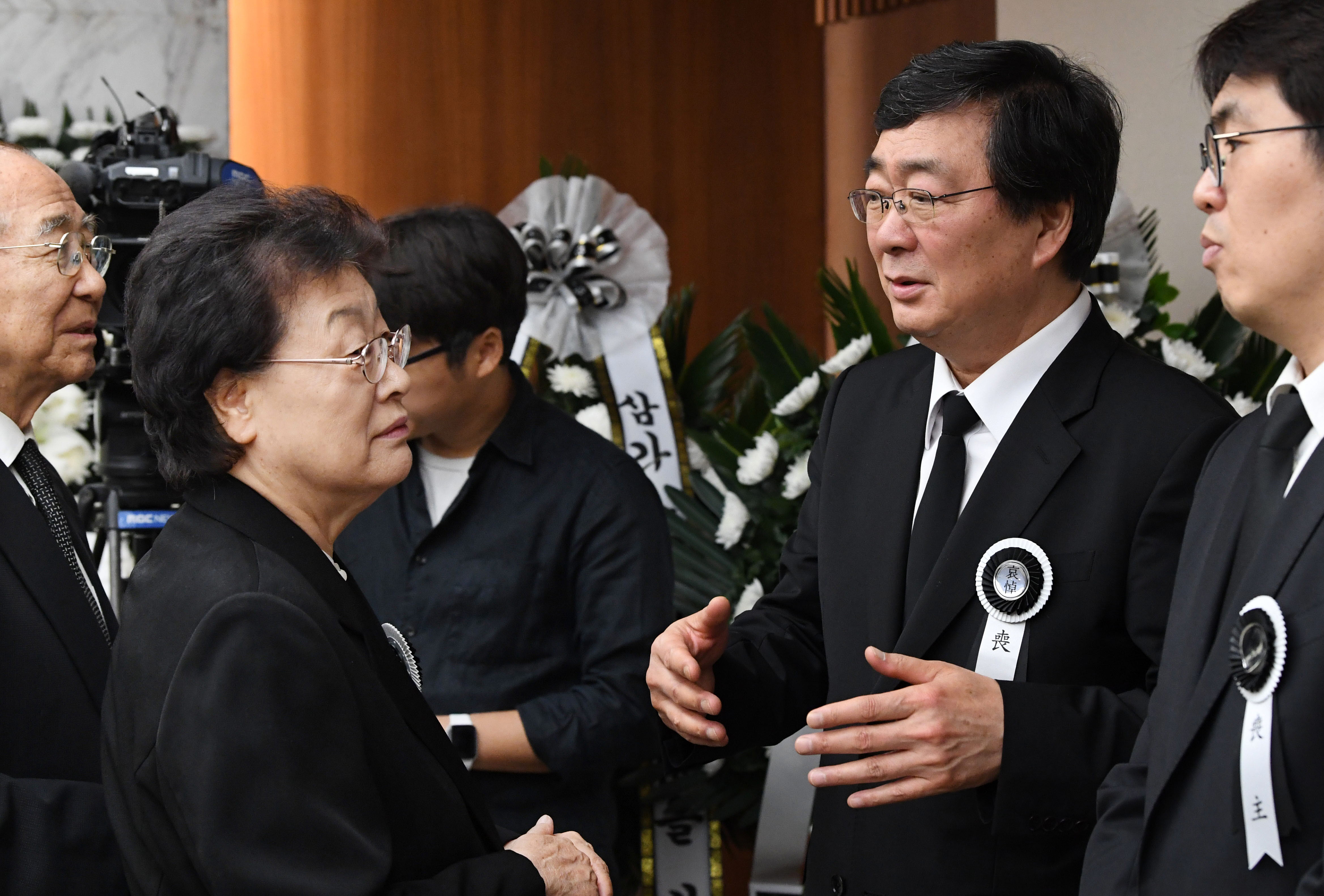 [서울=eoimage] 고성준 기자 = 장상 전 국무총리 서리가 12일 서울 서대문구 신촌 세브란스병원 장례식장에 마련된 고 이희호 여사의 빈소를 찾아 조문하고 있다. 2019.6.12