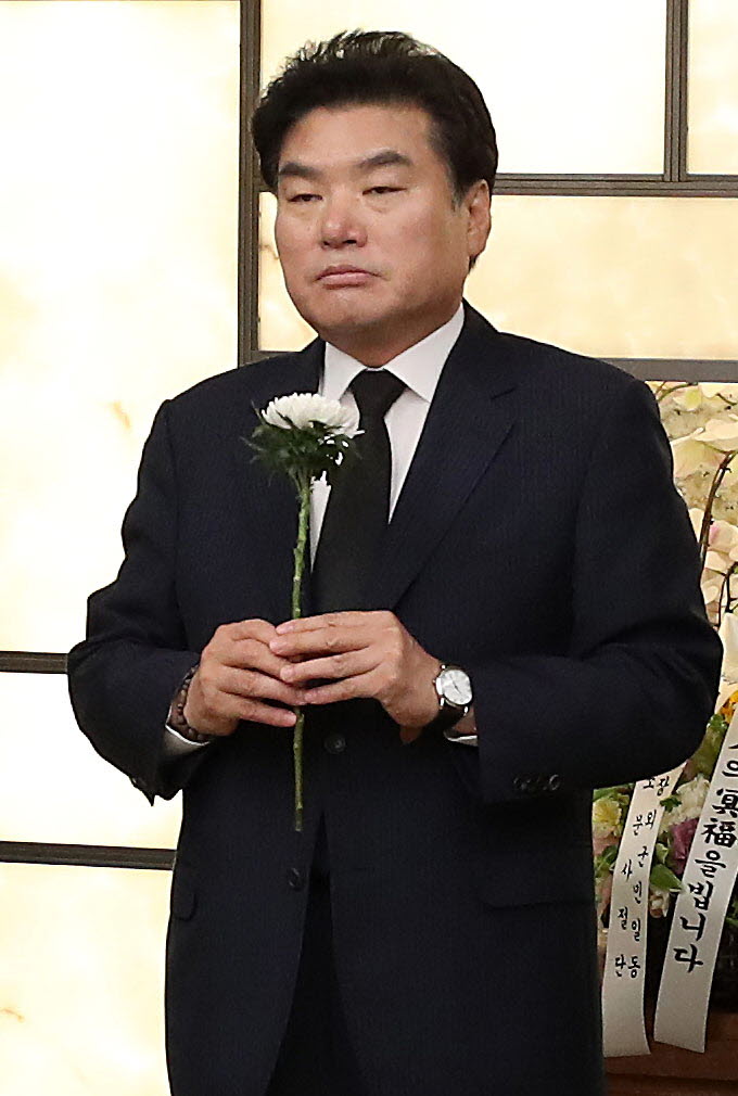 [서울=eoimage] 고성준 기자 = 원유철 자유한국당 의원이 12일 오전 서울 서대문구 신촌세브란스병원 장례식장에 마련된 김대중 전 대통령 부인 고(故) 이희호 여사의 빈소에서 조문을 하고 있다. 2019.06.12