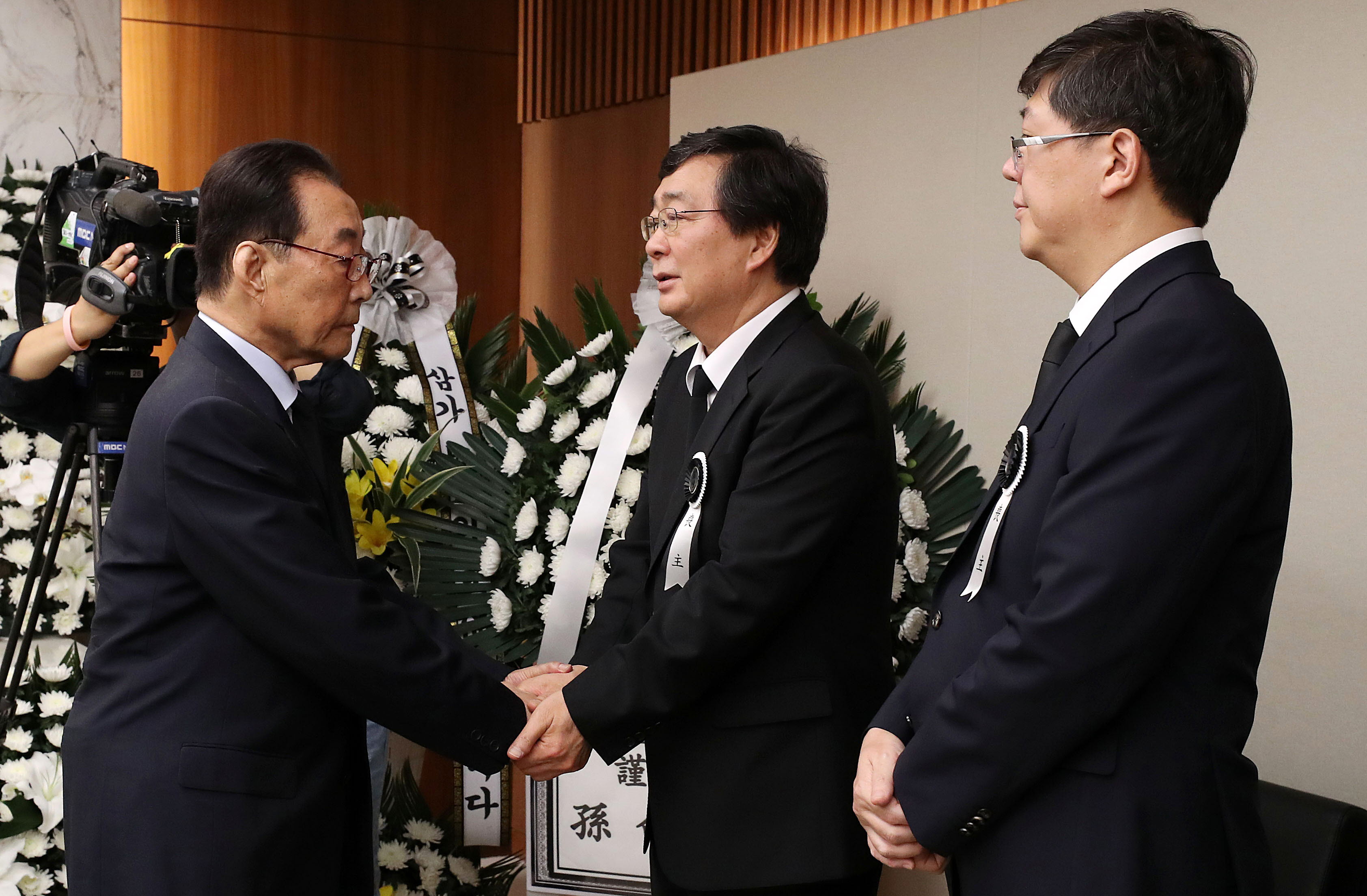 [서울=eoimage] 고성준 기자 = 고건 전 국무총리가 12일 오전 서울 서대문구 신촌세브란스병원 장례식장에 마련된 김대중 전 대통령 부인 고(故) 이희호 여사의 빈소에서 조문을 하고 있다. 2019.06.12