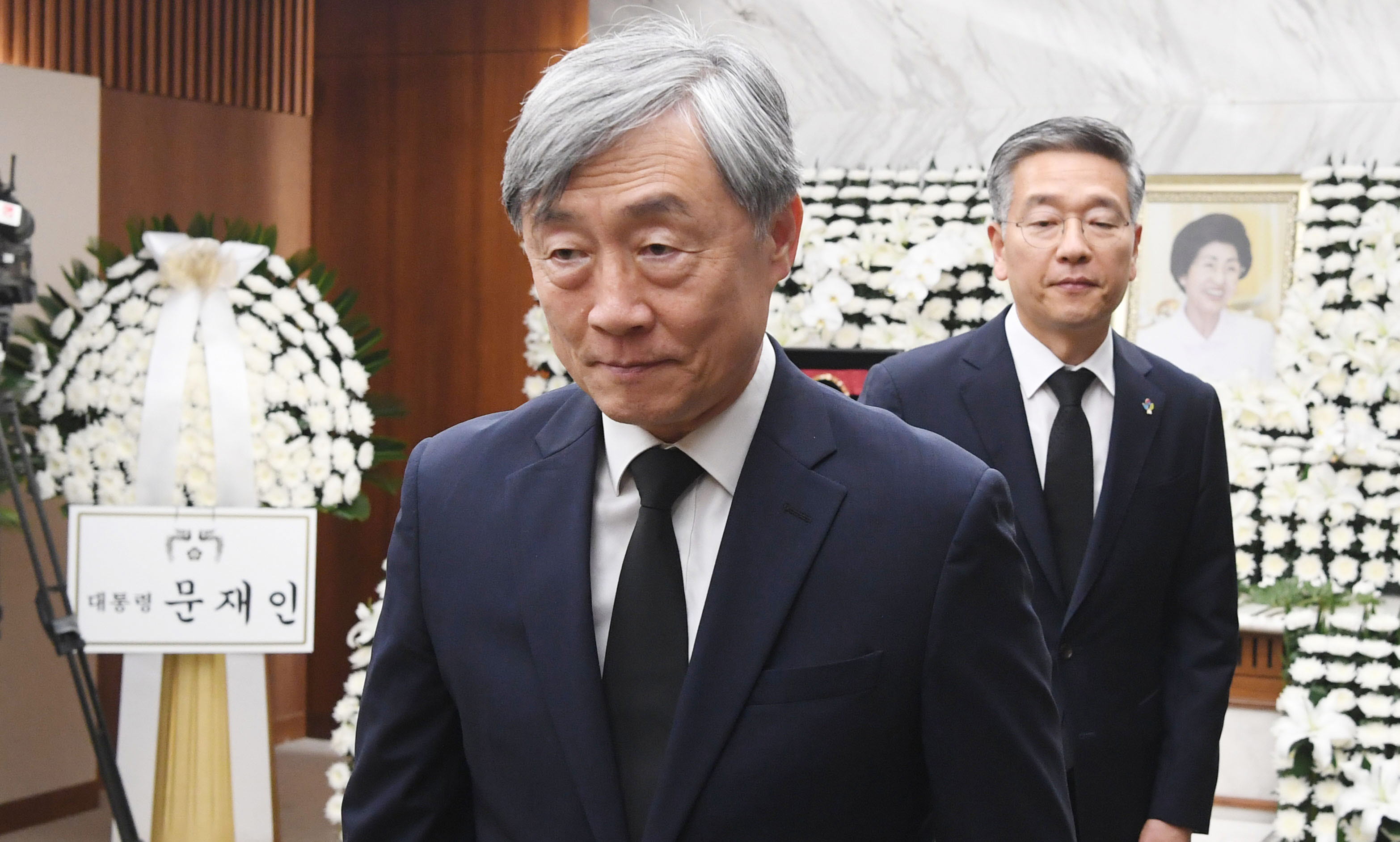 [서울=eoimage] 고성준 기자 = 최재형 감사원장이 12일 서울 서대문구 신촌 세브란스병원 장례식장에 마련된 고 이희호 여사의 빈소를 찾아 조문하고 있다. 2019.6.12