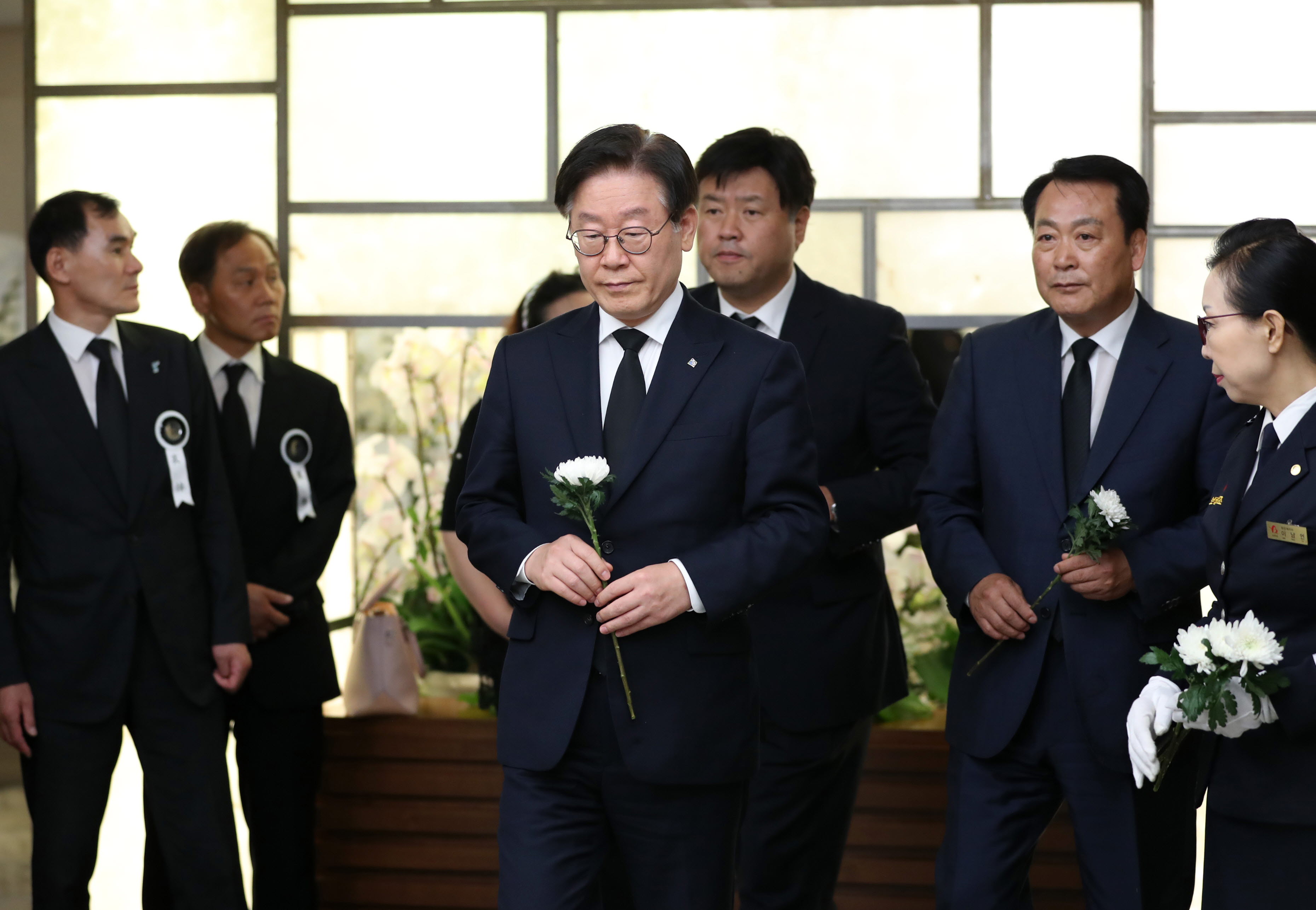 [서울=eoimage] 고성준 기자 = 이재명 경기도지사가 12일 서울 서대문구 신촌 세브란스병원 장례식장에 마련된 고 이희호 여사의 빈소를 찾아 조문하고 있다. 2019.6.12