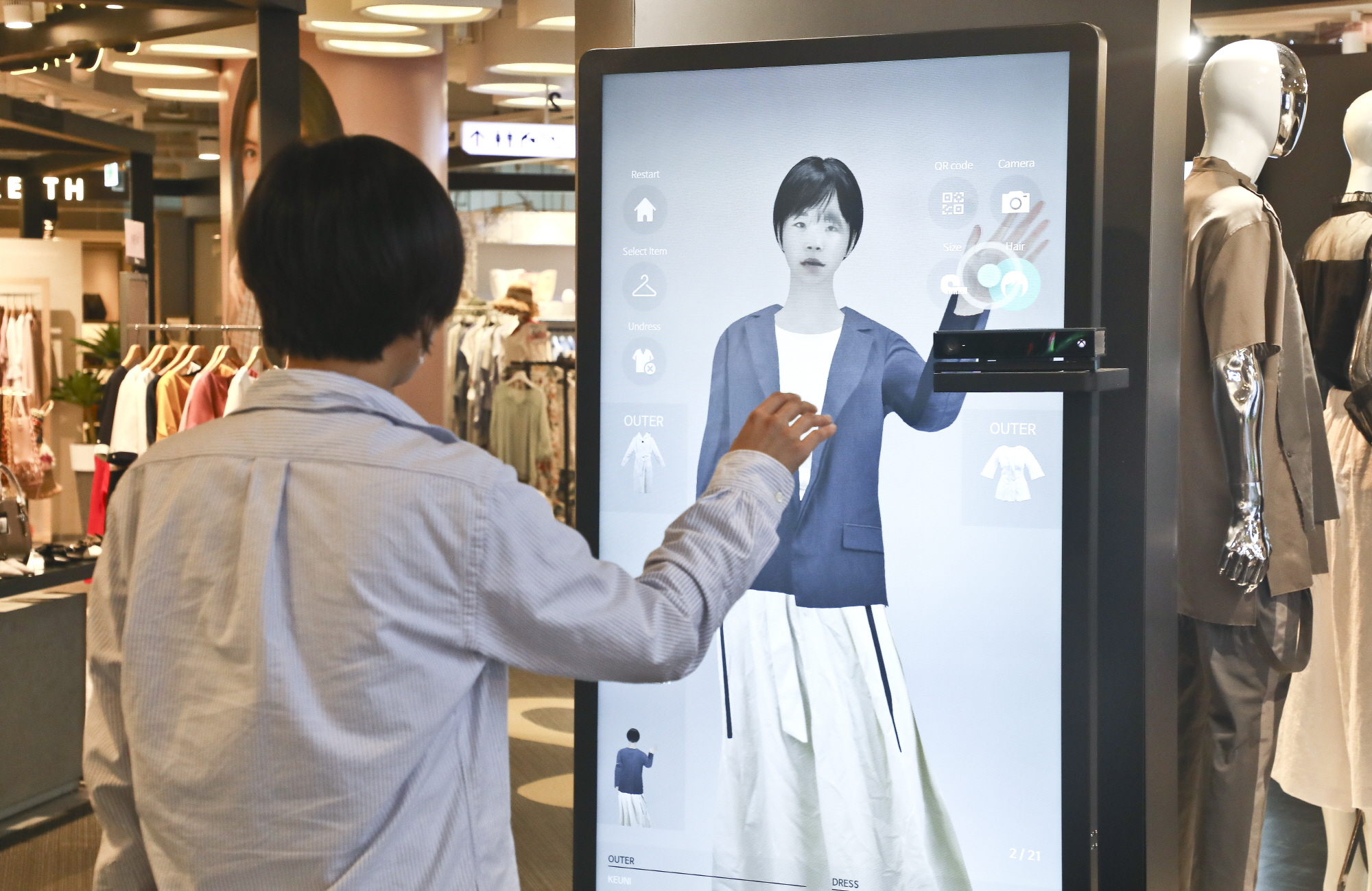 [서울=eoimage] 고성준 기자 = 13일 오후 서울 동대문구에 위치한 WITH IN 24 매장을 찾은 고객이 키오스크를 통해 제품을 둘러보고있다. 2019.6.13