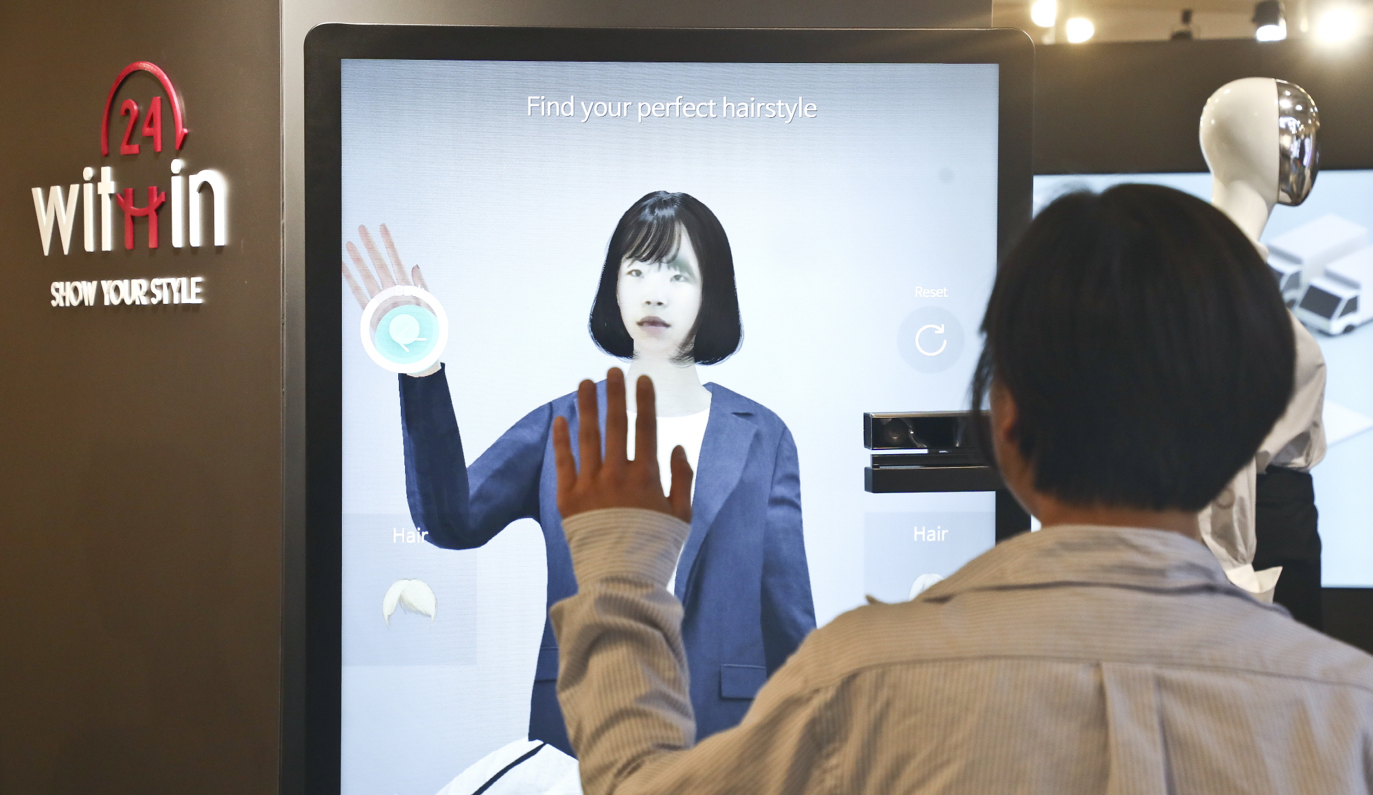 [서울=eoimage] 고성준 기자 = 13일 오후 서울 동대문구에 위치한 WITH IN 24 매장을 찾은 고객이 키오스크를 통해 제품을 둘러보고있다. 2019.6.13