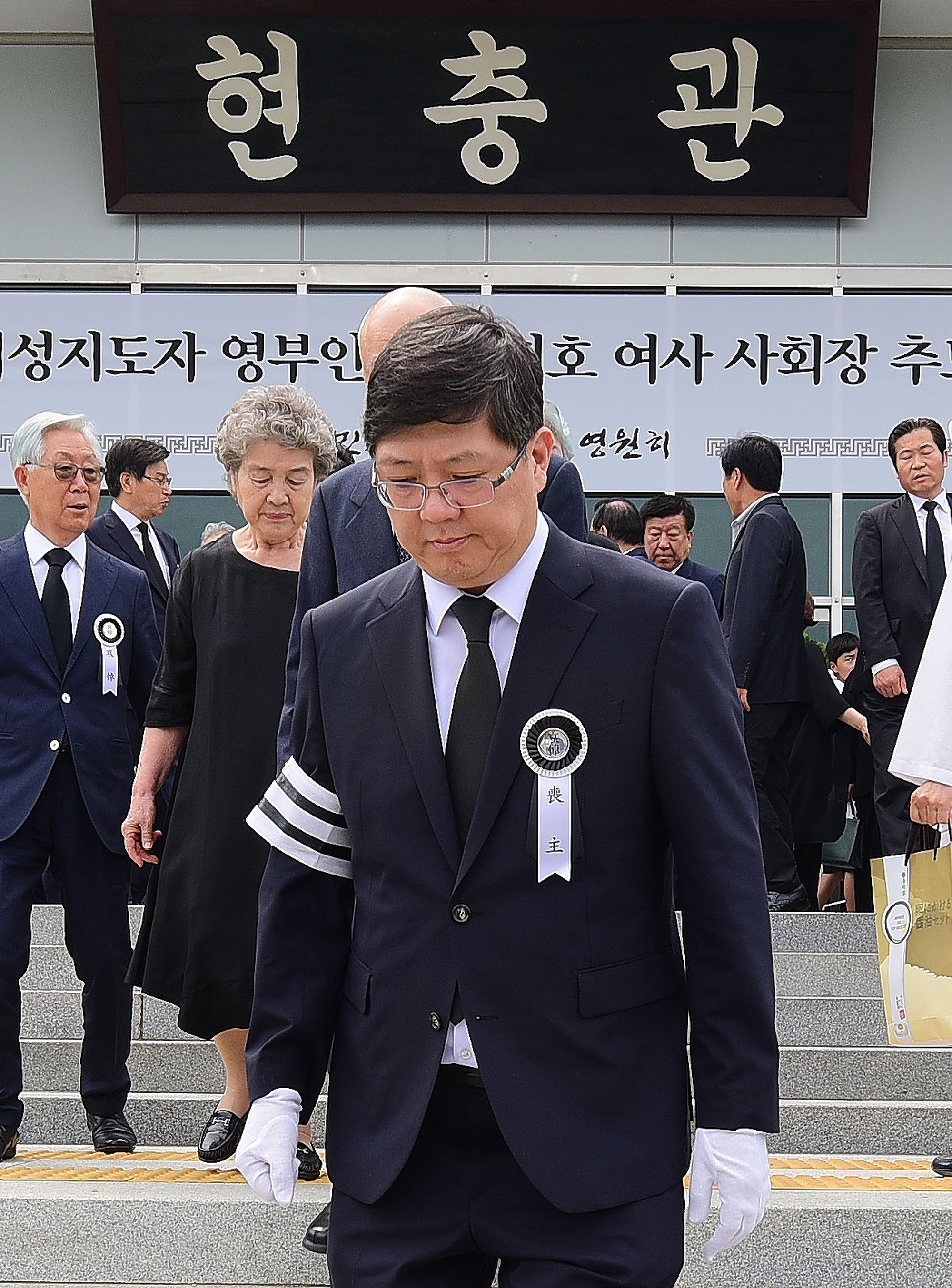 김대중 전 대통령의 부인 고 이희호 여사의 추모식 14일 오전 서울시 동작구 국립서울현충원 현충관에서 열린 가운데 고인의 아들 김홍걸 민족화해협력범국민협의회 대표상임의장이 추모식을 미치고 장지로 이동하고 있다 2019.06.14