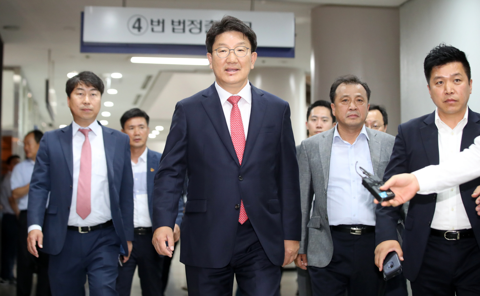 [서울=eoimage] 고성준 기자 = 강원랜드 채용비리 의혹을 받고 있는 권선동 자유한국당 의원이 24일 오후 서울 서초구 서울중앙지법에서 1심 선고를 받기 위해 법정으로 향하고 있다. 2019.6.24
