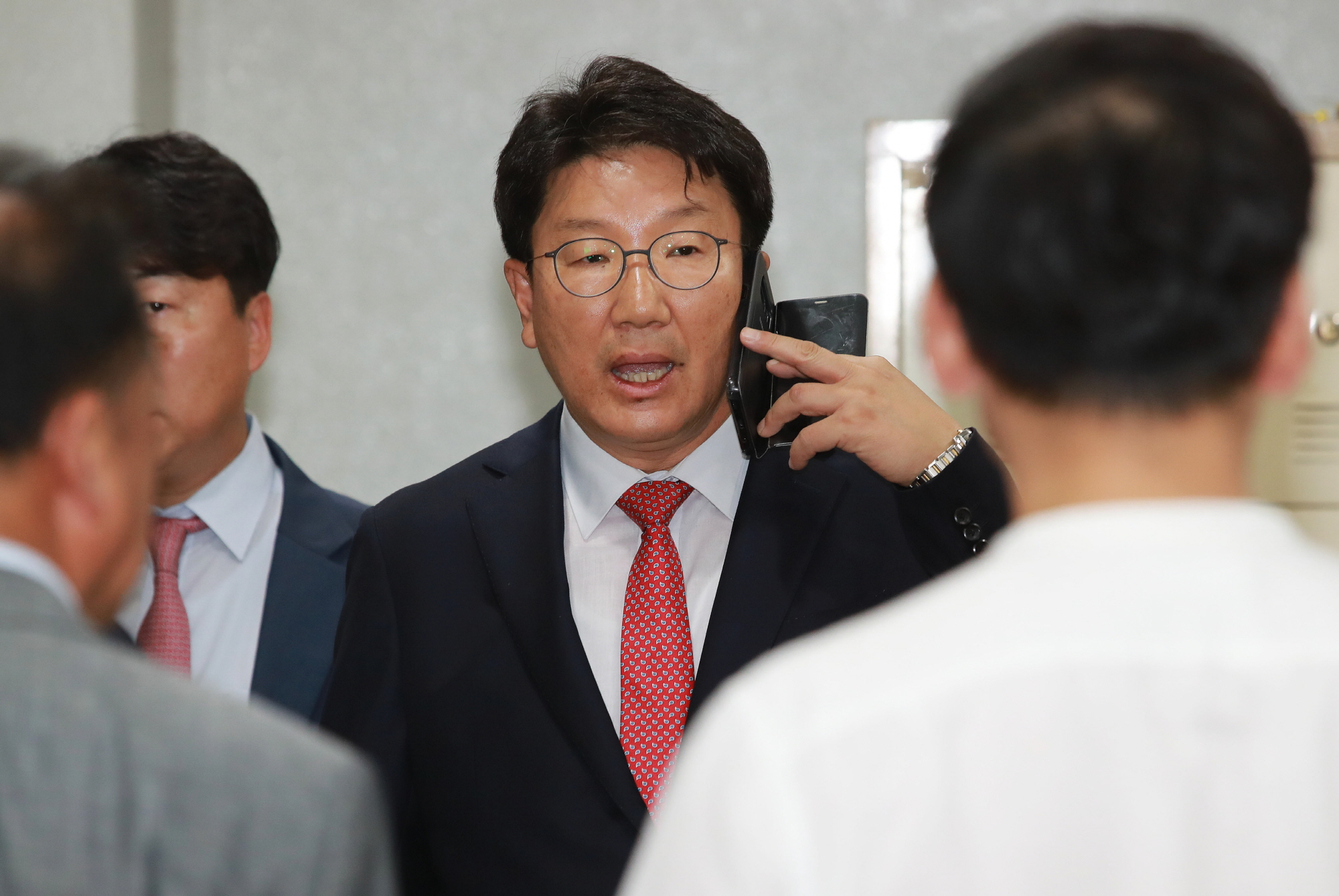 [서울=eoimage] 고성준 기자 = 강원랜드 채용비리 의혹을 받고 있는 권선동 자유한국당 의원이 24일 오후 서울 서초구 서울중앙지법에서 1심 선고를 받기 위해 법정으로 향하고 있다. 2019.6.24