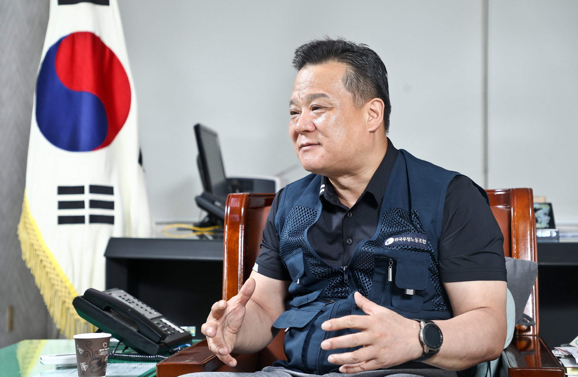 [서울=eoimage] 고성준 기자 = 이동호 우정노조위원장이 서울 광화문우체국에서 시사저널과 인터뷰를 하고있다. 2019.6.25