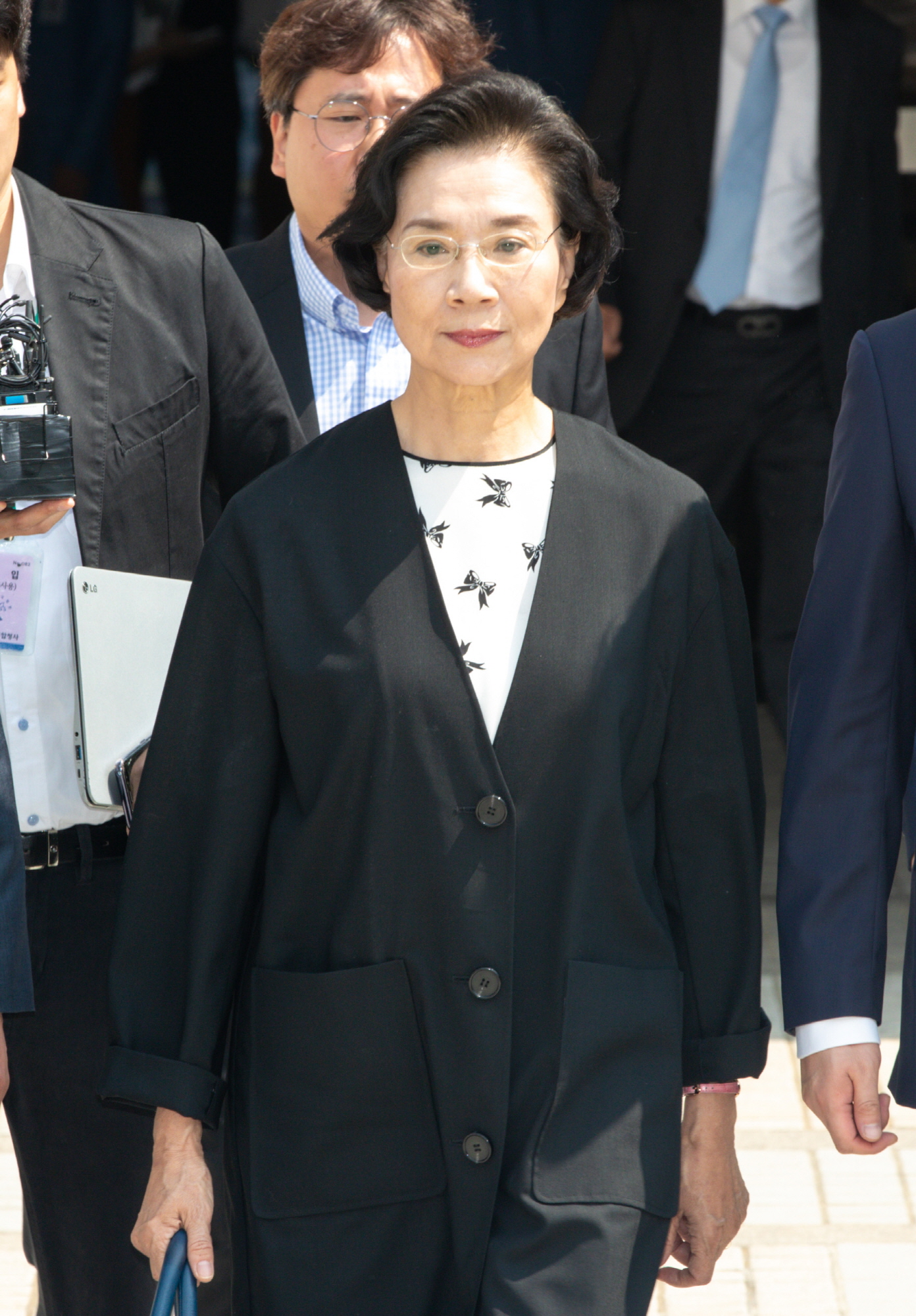 [서울=eoimage] 고성준 기자 = 필리핀 가사도우미를 불법 고용한 혐의를 받는 이명희 전 일우재단 사장이 2일 오후 서울 서초구 서울중앙지방법원에서 열린 1심 선고공판을 마친 뒤 법원을 나서고 있다. 2019.7.2