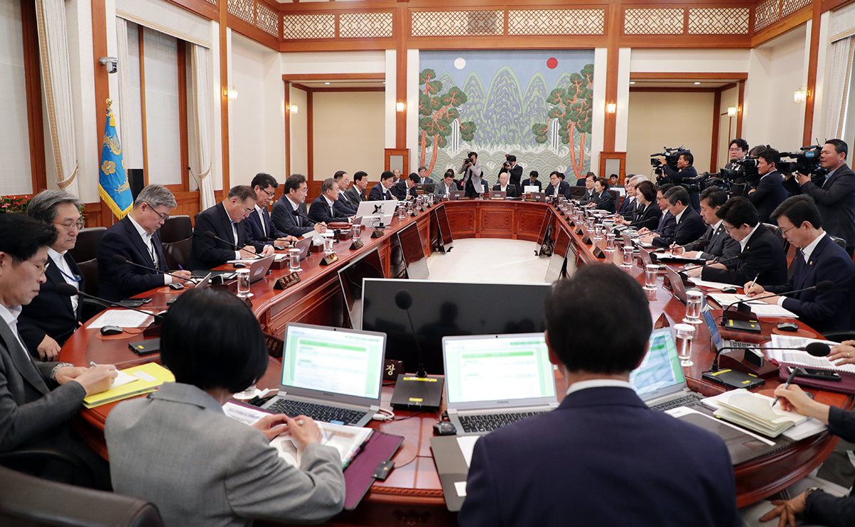 문재인 대통령이 1일 오전 청와대 본관 집현실에서 열린 제26회 국무회의를 주재하고 있다. 2019.7.1