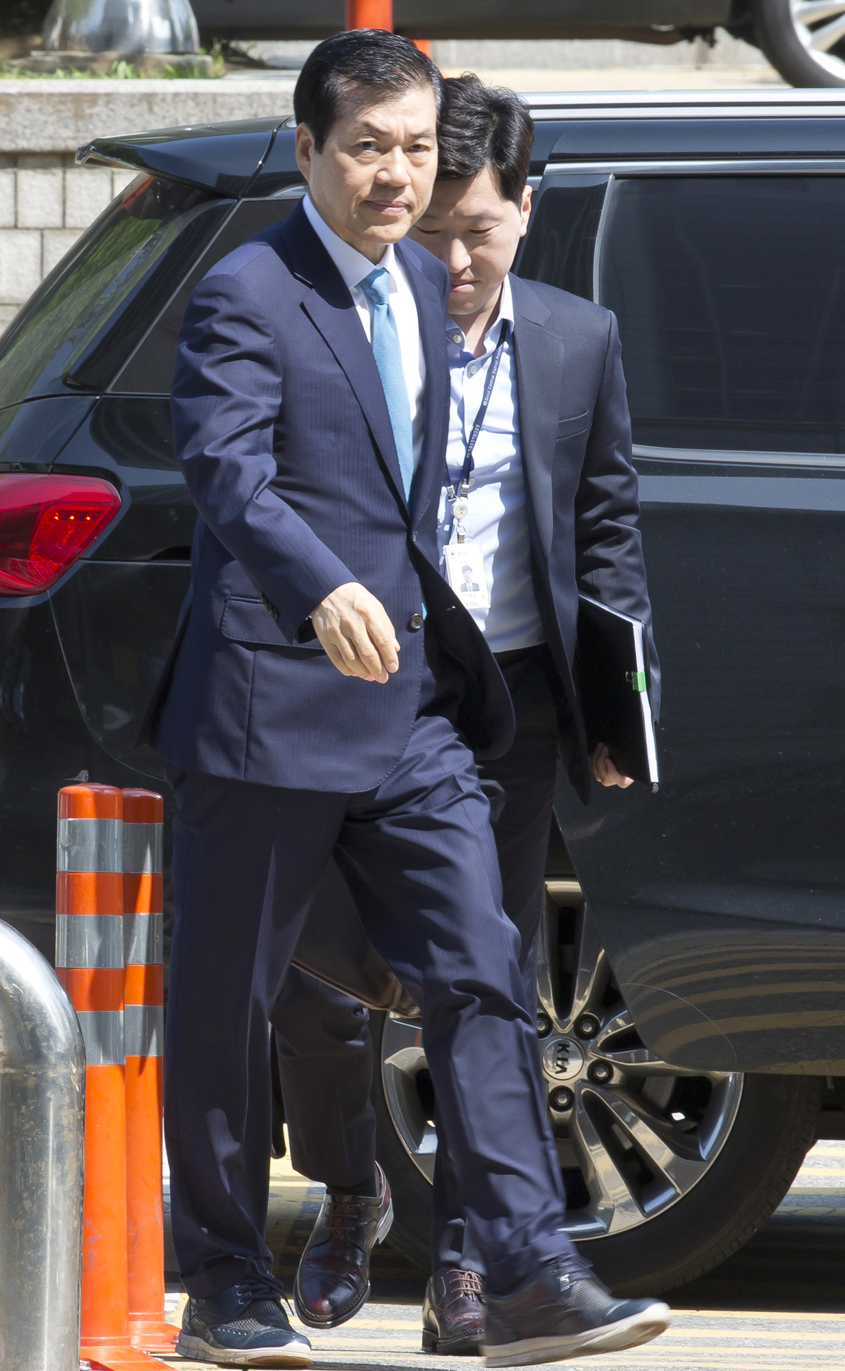 [eoimage=서울] 임준선 기자 = 삼성바이오로직스 분식회계 혐의를 받고 있는 김태한 삼성바이오로직스 대표이사가 19일 오전 서울 서초구 서울중앙지방법원에서 열린 구속 전 피의자심문(영장실질심사)에 출석하고 있다 2019.07.19 eomaster@eoimage.com