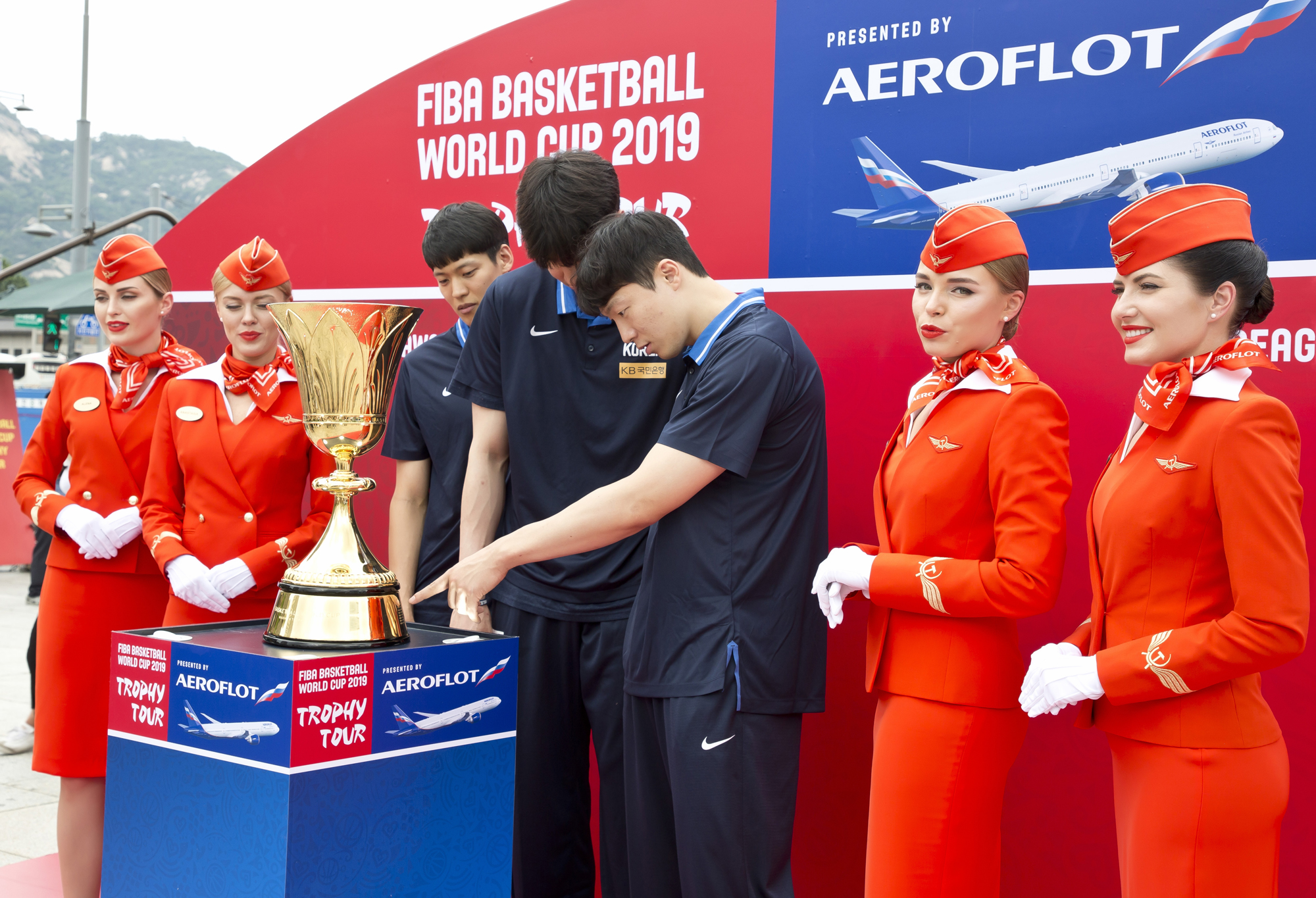 | 사진설명 | [eoimage=서울] 임준선 기자 = 29일 오후 광화문 북측 광장에서 2019 FIBA 눙구월드컵 우승트로피 '내이스미스 트로피' 투어행사 및 남자농구 국가대표팀의 미디어 행사가 열리고 있다. 사진은 2019 FIBA 눙구월드컵 우승트로피 '내이스미스 트로피' 와 농구 국가대표 김선형 김종규 이정현 선수. 2019.07.29 eomaster@eoimage.com |