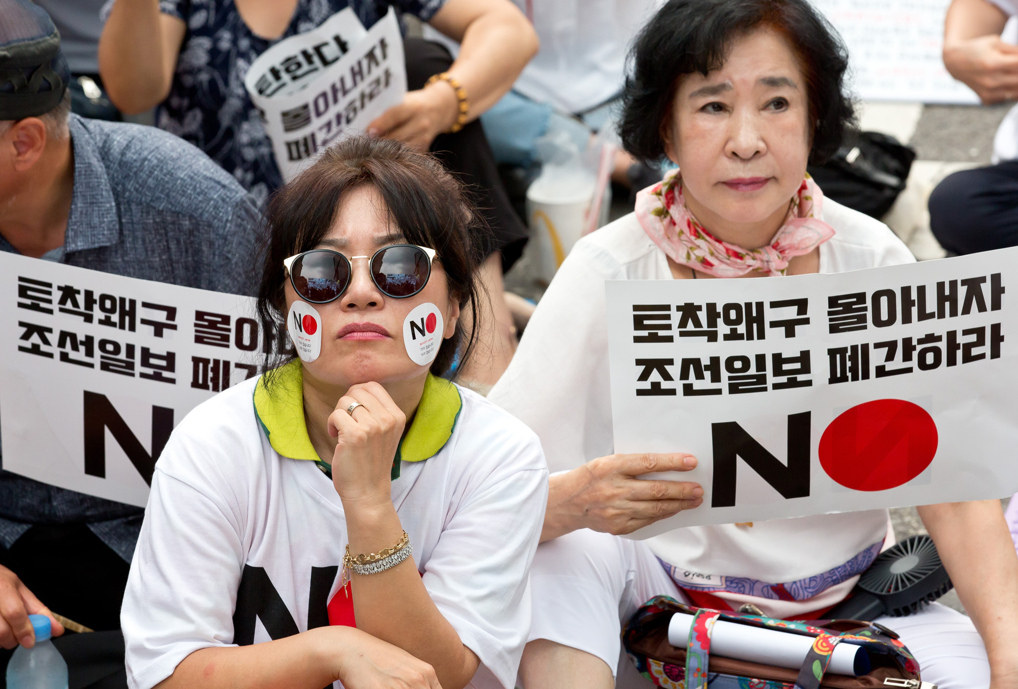 [Eoimage=서울] (이오이미지)임준선 기자 = 3일 저녁 서울 종로구 일본대사관 앞에서 아베규탄 시민행동 주최로 열린