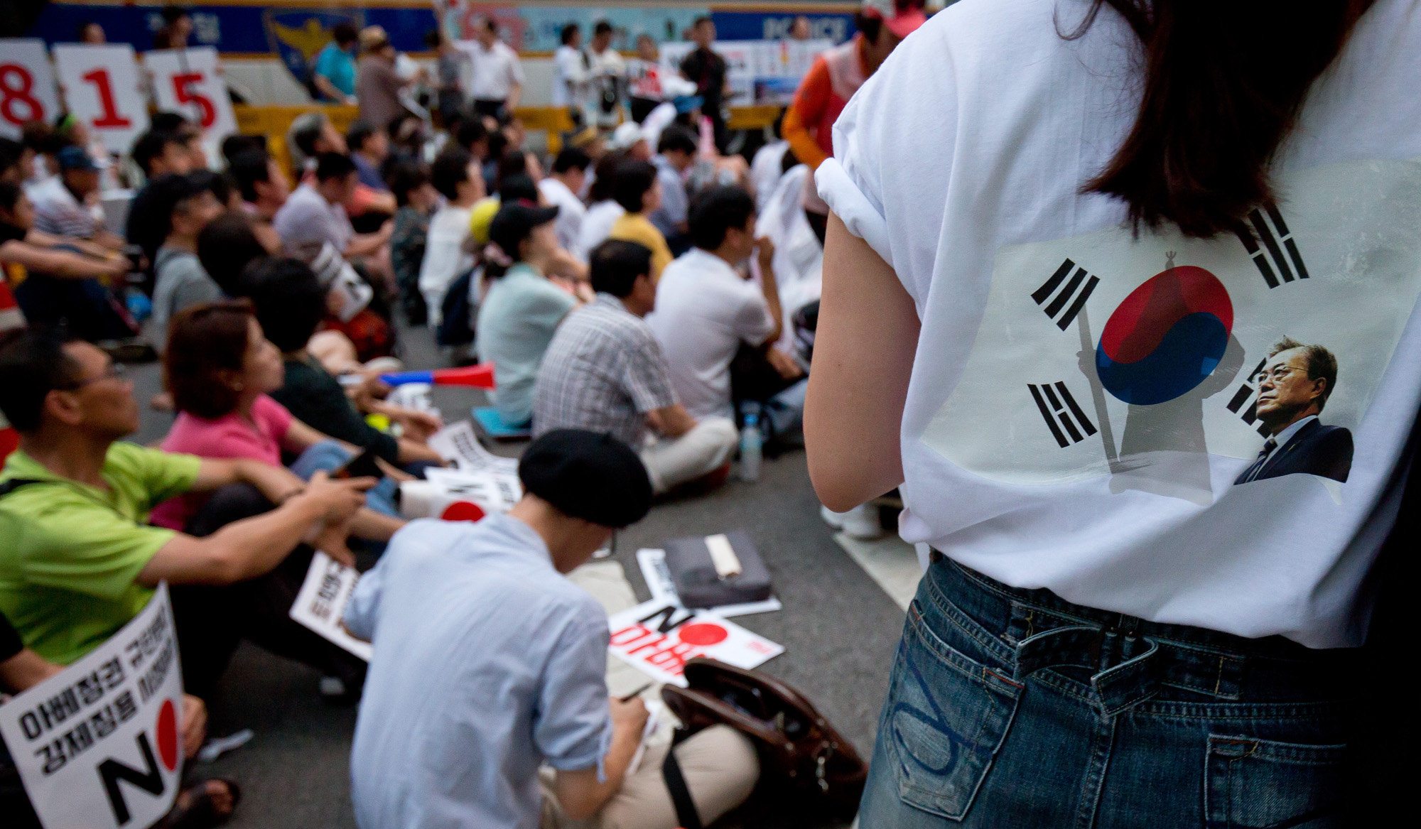 [Eoimage=서울] (이오이미지)임준선 기자 = 3일 저녁 서울 종로구 일본대사관 앞에서 아베규탄 시민행동 주최로 열린