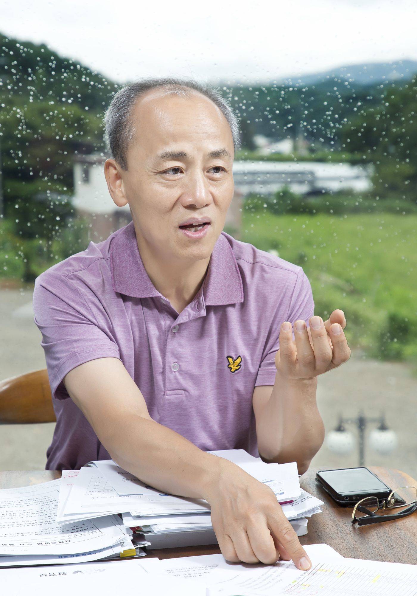 [eoimage=용인] 임준선 기자 =15일 용인에서 최병성 용인시 난개발조사특별위원회 위원장이 시멘트 유해성분에 관하여 일요신문과 인터뷰를 하고 있다. 2019.08.15 eomaster@eoimage.com