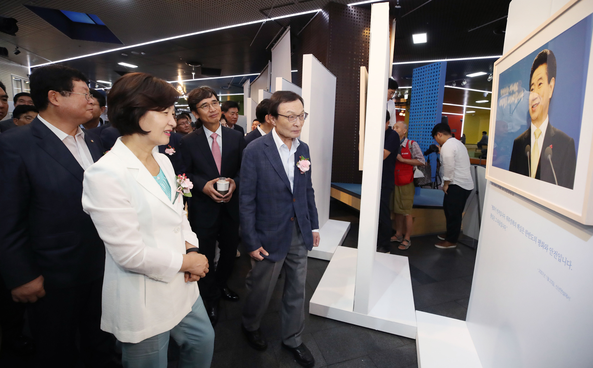 | 사진설명 | 더불어민주당 이해찬 대표, 이인영 원내대표, 추미애 상임고문, 설훈 민화협 상임의장, 유시민 노무현재단 이사장, 박원순 시장등이 16일 오전 서울시청 시민청 시민플라자에서 열린 김대중-노무현 대통령 서거 10주기 추모사진전에 참석해 전시된 사진을 둘러보고 있다. 2019.08.16 사진/임준선기자 (현장풀) |