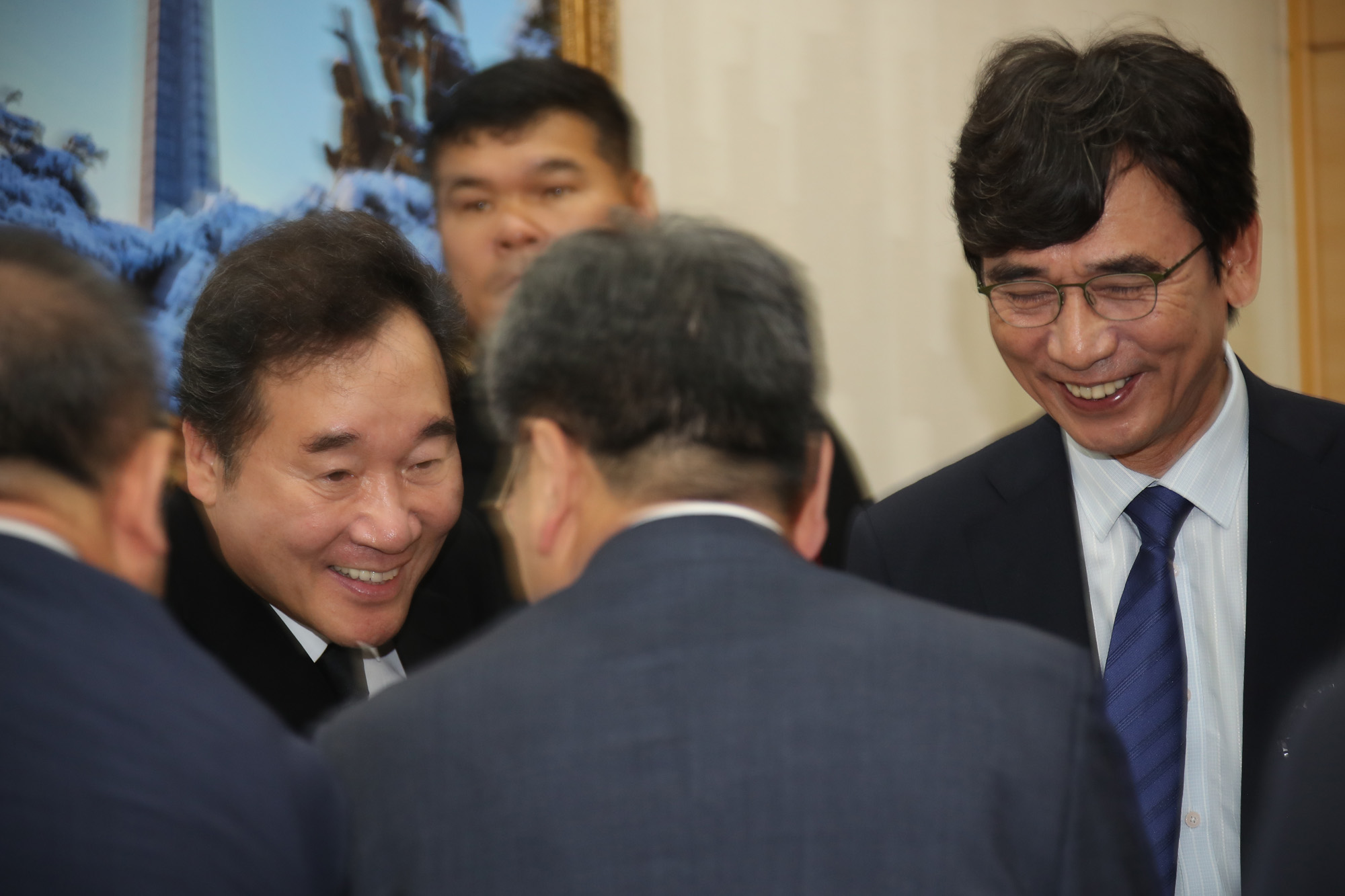 이낙연 국무총리가 18일 오전 국립서울현충원 현충관에서 열린 고(故) 김대중(DJ) 전 대통령 서거 10주기 추도식에서 인사를 나누고 있다. 2019.08.18 사진 임준선기자(현장풀)
