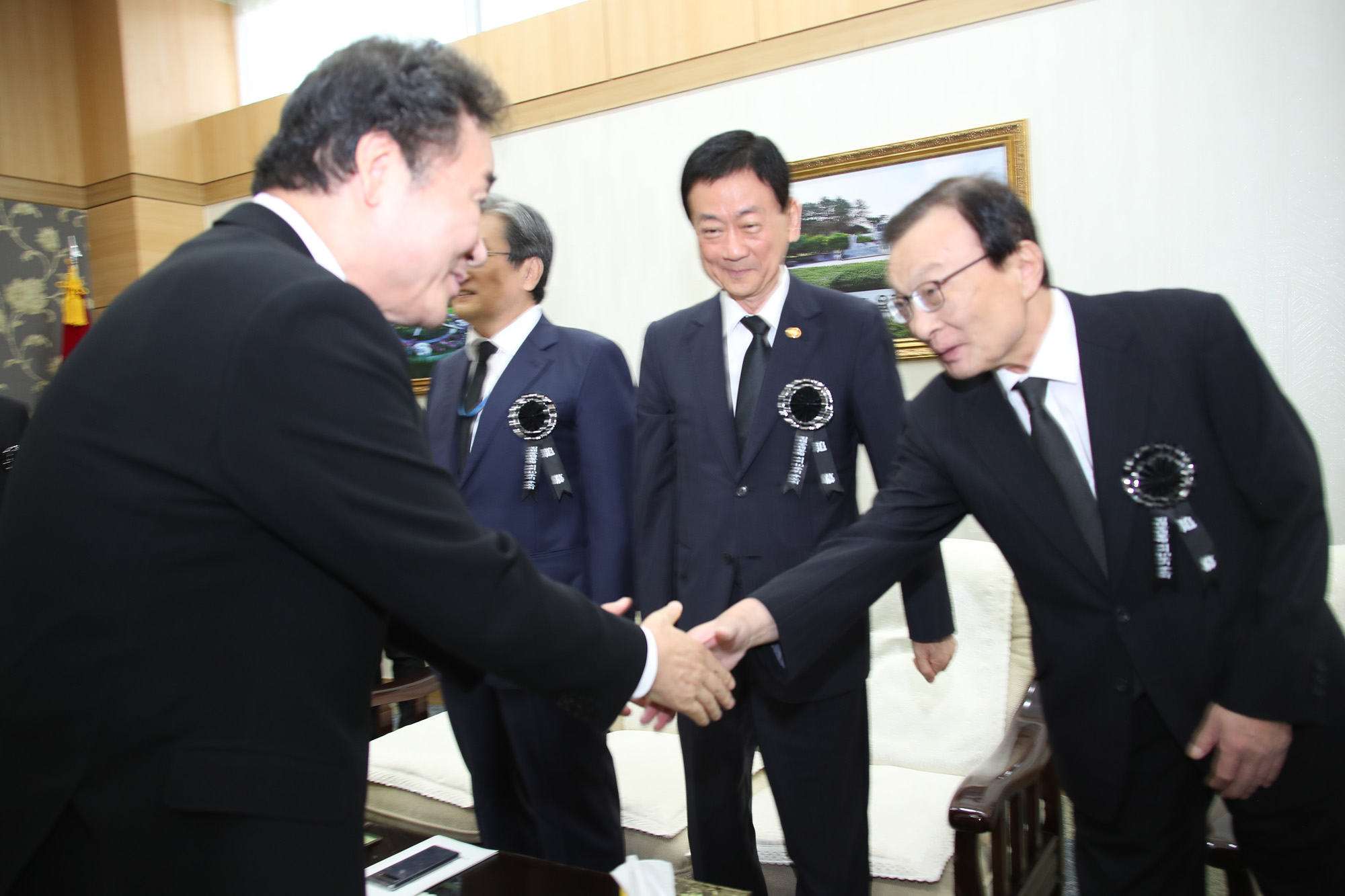 이낙연 국무총리가 18일 오전 국립서울현충원 현충관에서 열린 고(故) 김대중(DJ) 전 대통령 서거 10주기 추도식에서 인사를 나누고 있다. 2019.08.18 사진 임준선기자(현장풀)
