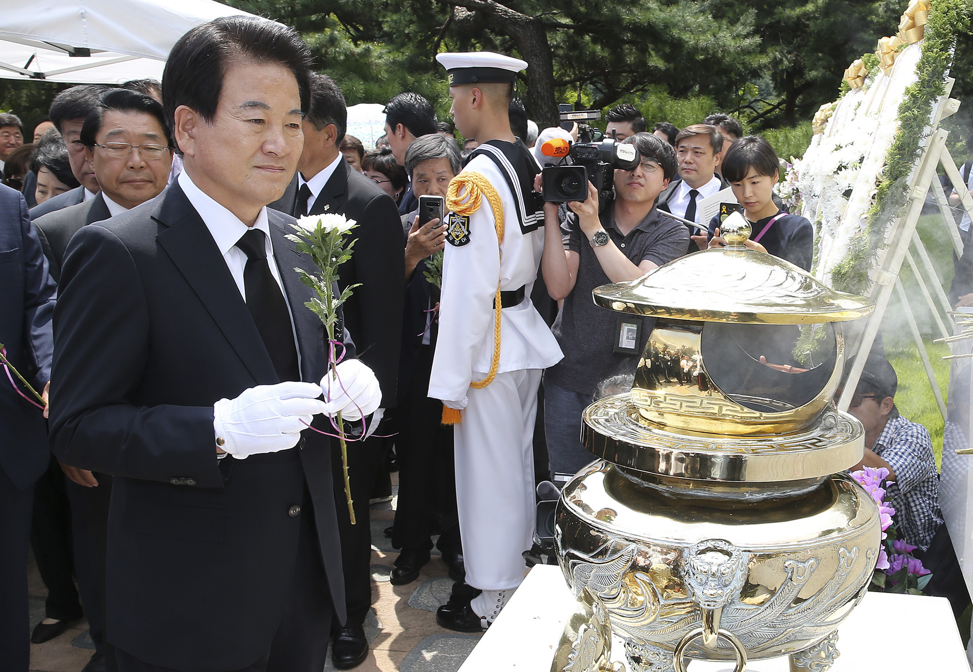 정동영 민주평화당 대표가 18일 오전 서울 동작구 국립서울현충원에서 열린 고(故) 김대중 전 대통령 서거 10주기 추도식에서 헌화를 하고 있다. 2019.08.18 사진/임준선기자 (현장풀)