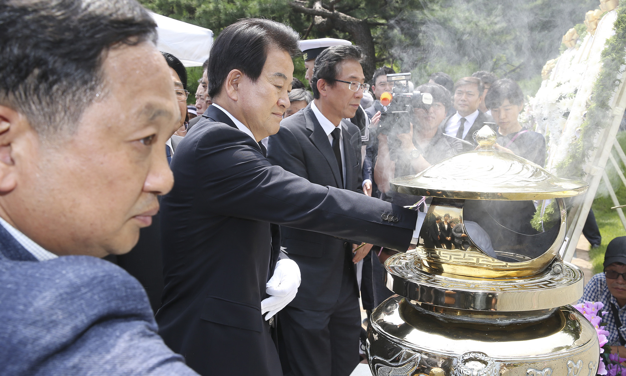 정동영 민주평화당 대표가 18일 오전 서울 동작구 국립서울현충원에서 열린 고(故) 김대중 전 대통령 서거 10주기 추도식에서 분향을 하고 있다. 2019.08.18 사진/임준선기자 (현장풀)