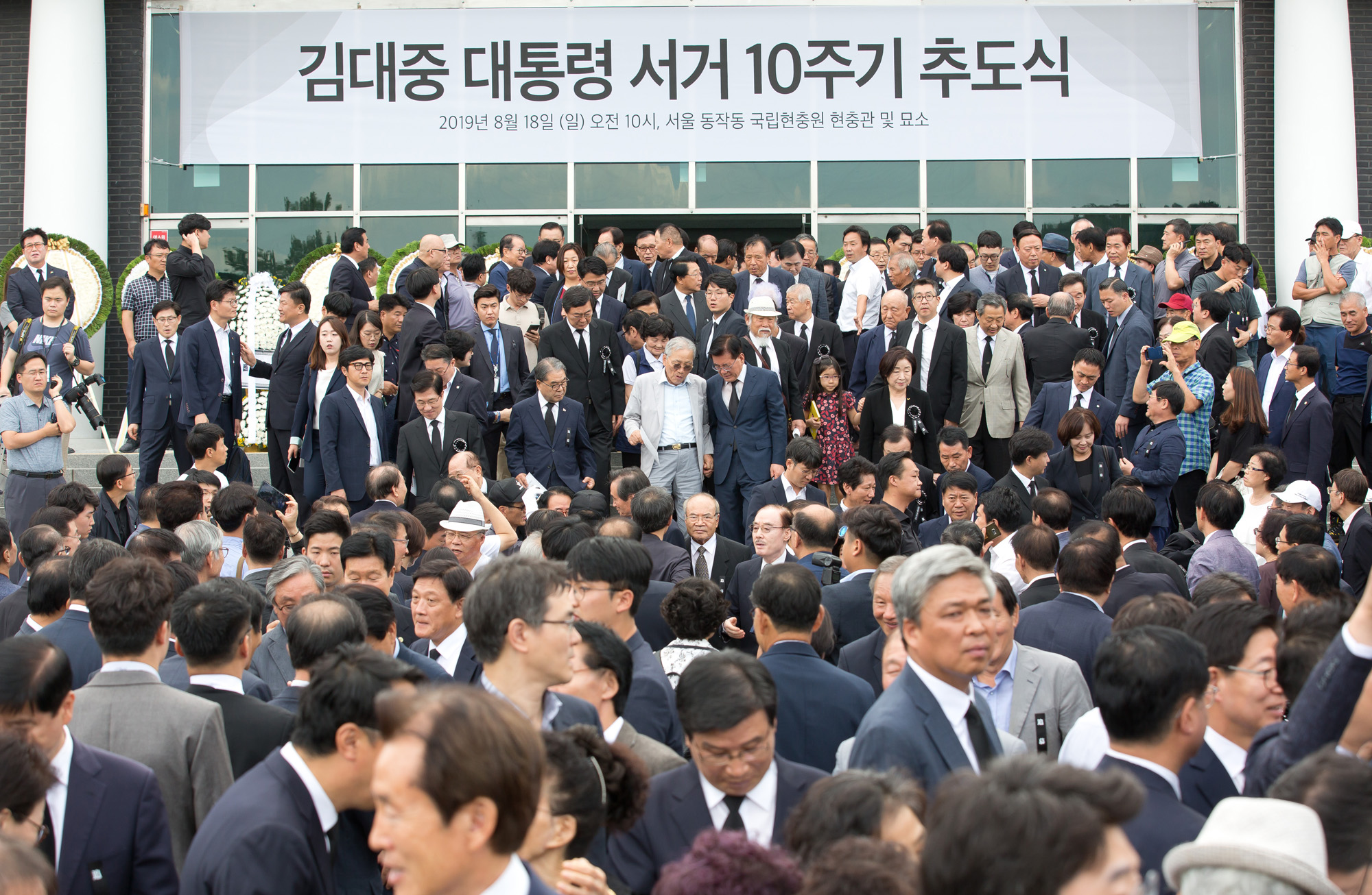 [Eoimage=서울] 임준선 기자 =8일 오전 국립서울현충원에서 열린 김대중 전 대통령 서거 10주기 추도식을 마친 추도객들이 현충관을 나오고 있다. 2019.08.18 eomaster@eoimage.com
