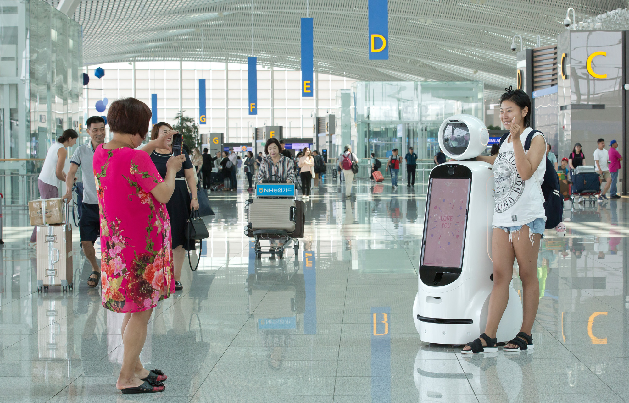 [Eoimage=서울] 임준선 기자 =21일 오전 인천국제공항 제2여객터미널에서 에어스타 로봇이 탑승객 들에게 길안내 및 사진찍기 서비스를 하고 있다. 2019.08.21eomaster@eoimage.com