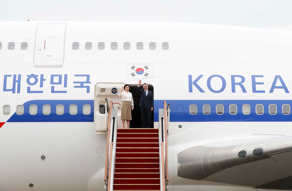문재인 대통령과 김정숙 여사가 아세안 3국 순방을 위해 1일 서울공항을 통해 출국하며 인사하고 있다. 문 대통령은 이날부터 6일까지 5박6일간 미얀마와 라오스를 국빈 방문하고 태국을 공식 방문해 양자 간 실질 협력 강화 방안을 논의한다.