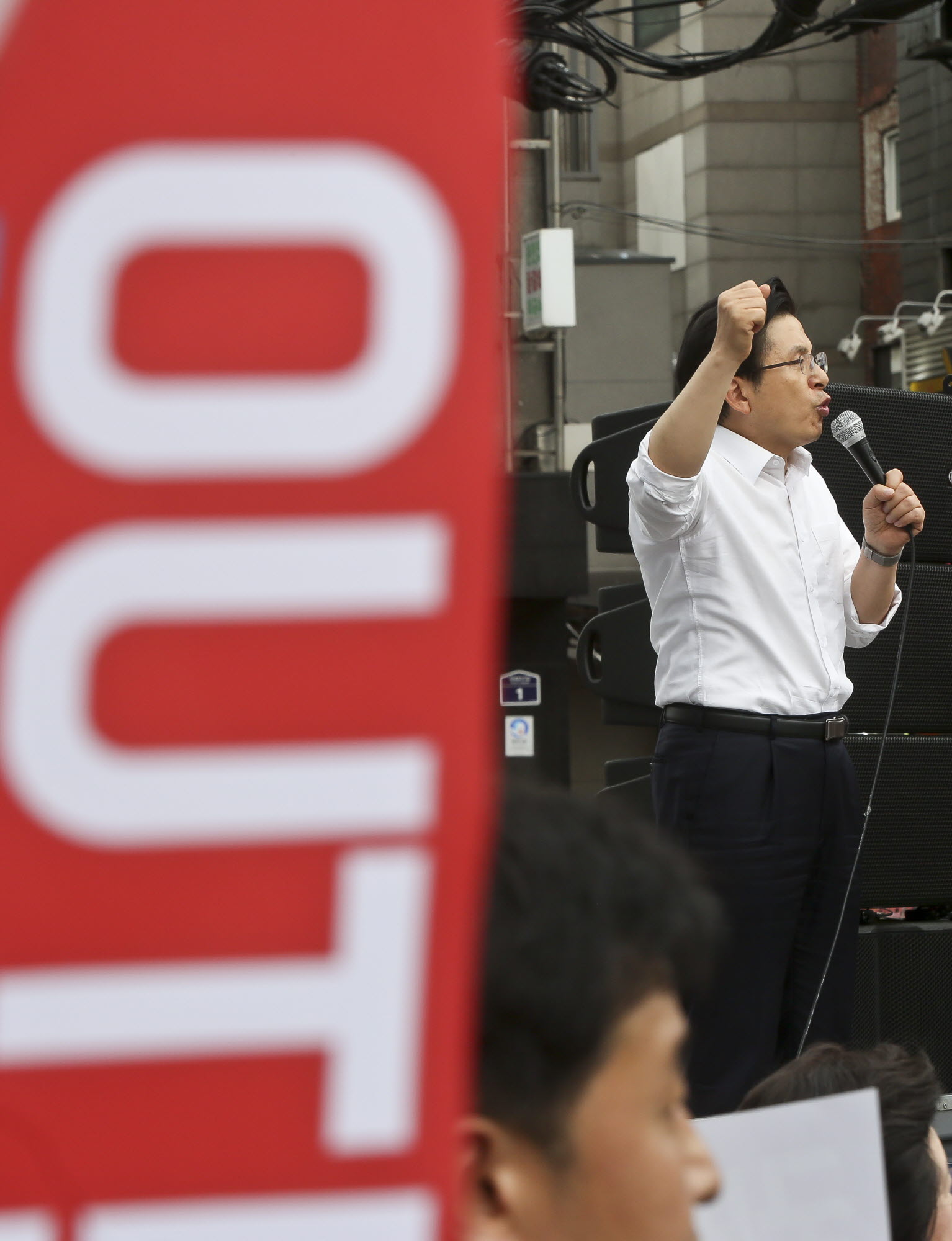[서울=eoimage] 고성준 기자 = 황교안 자유한국당 대표가 10일 서울 현대유플렉스 신촌점 앞에서 열린 '살리자 대한민국 ! 문재인정권 규탄대회'에 참석해 발언하고 있다. 2019.9.10