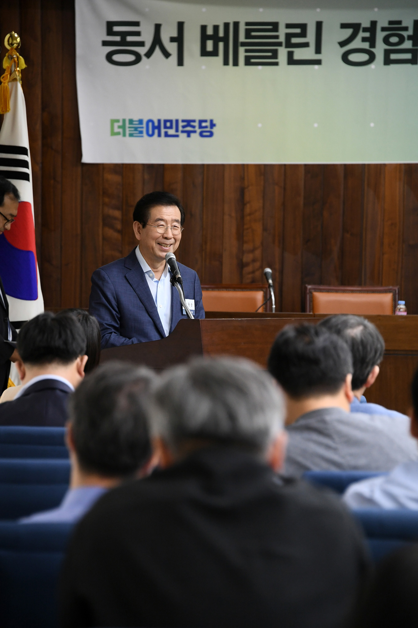 박원순 서울시장이 2일 서울 여의도 국회도서관에서 열린 동서 베를린 경험으로 본 지방정부의 남북협력 방안 모색 토론회에서 축사하고 있다. 서울시 제공