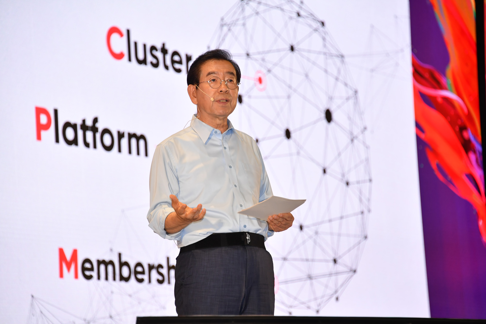 박원순 서울시장이 5일 오후 서울 중구 동대문디자인플라자에서 열린 '스타트업 서울:Tech-Rise 2019' 개막식에 참석해 환영사를 하고 있다. 서울시 제공