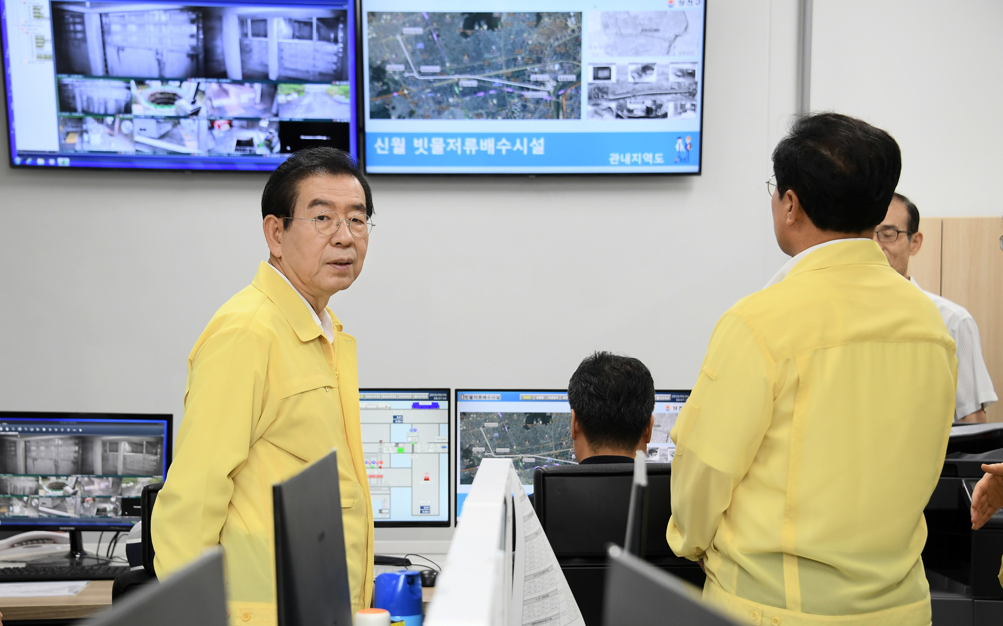 제13호 태풍 '링링'이 북상 중인 6일 박원순 서울시장이 서울 양천구 신월빗물저류소에서 현장을 점검하고 있다. 서울시 제공