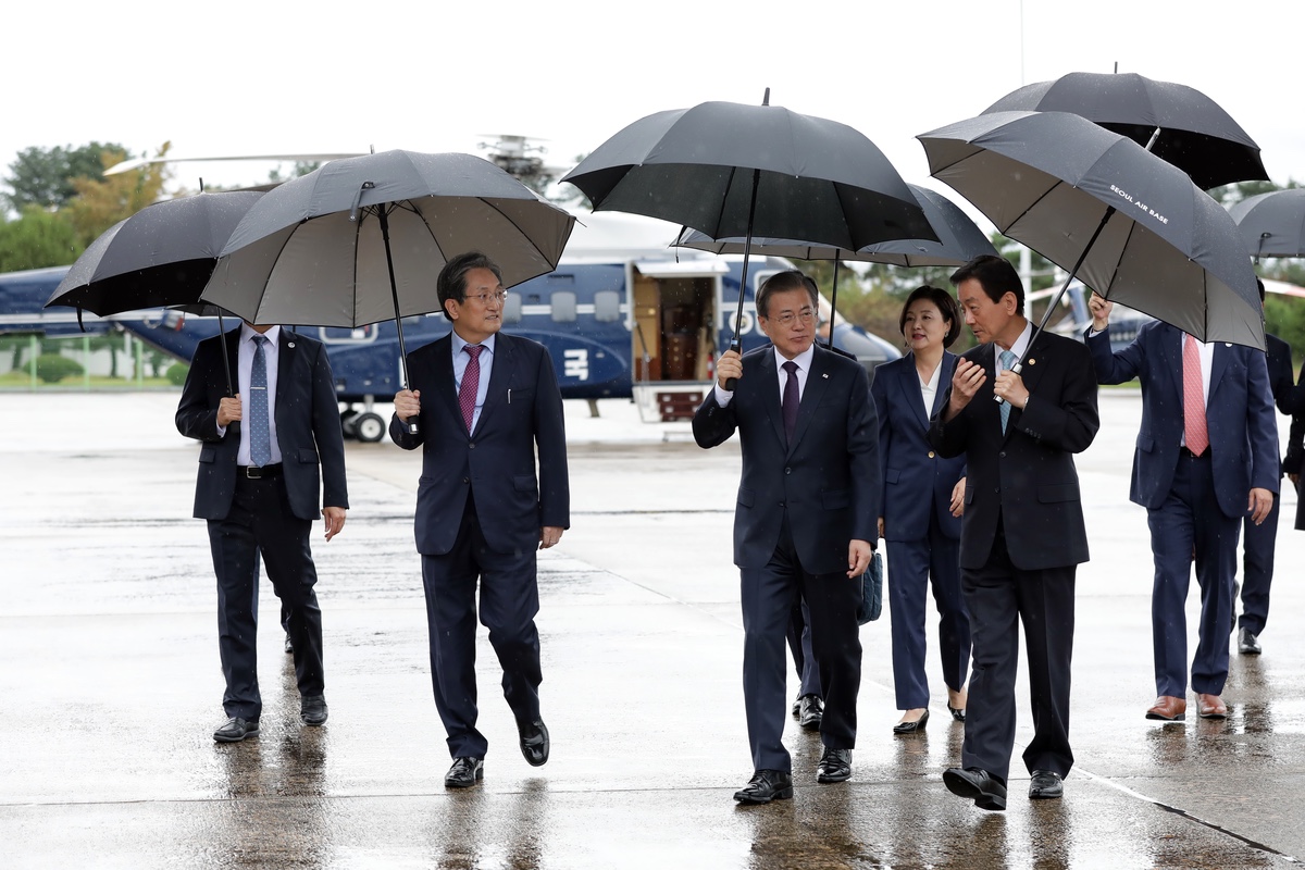 문재인 대통령과 영부인 김정숙 여사가 미국 뉴욕에서 열리는 제74차 유엔총회에 참석하기 위해 22일 오후 경기 성남시 서울공항을 통해 출국하고 있다.