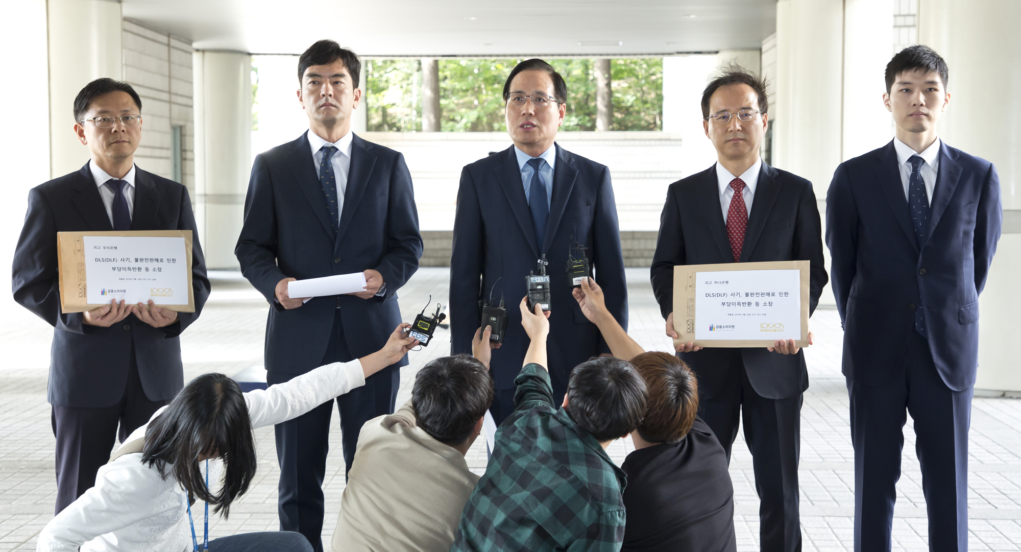 | 사진설명 | [eoimage=서울] 임준선 기자 = = 조남희 금융소비자원장이 25일 오전 서울 서초구 서울중앙지법에서 우리은행과 KEB하나은행이 판매한 해외 금리 연계 파생결합상품(DLS,DLF) 피해 관련 계약 취소 및 손해배상 청구 소송을 제기하기 위해 소장을 접수하기 전 성명서를 읽고 취재진의 질문에 답하고 있다. 2019.09.25 eomaster@eoimage.com |