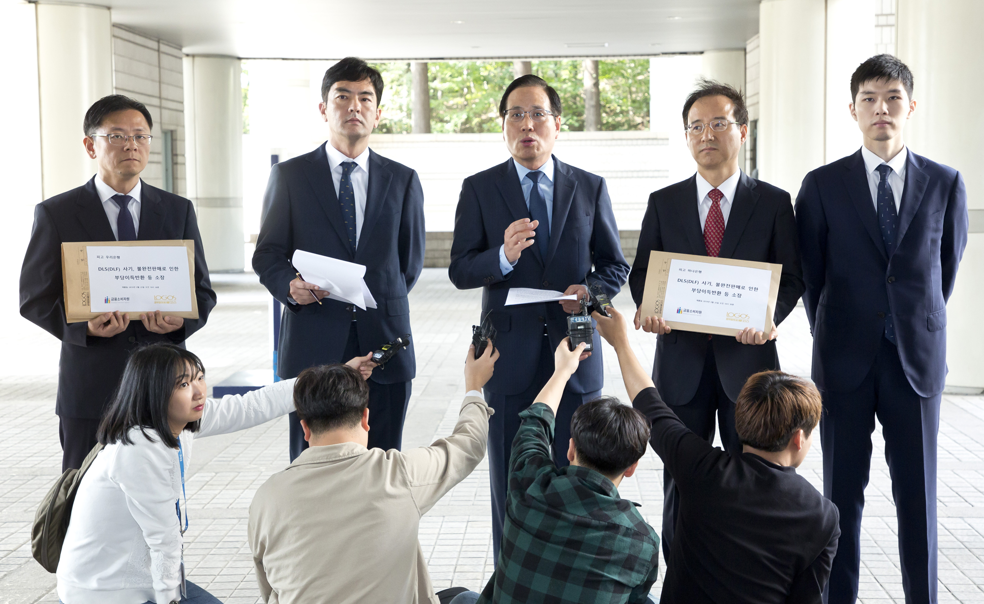 | 사진설명 | [eoimage=서울] 임준선 기자 = = 조남희 금융소비자원장이 25일 오전 서울 서초구 서울중앙지법에서 우리은행과 KEB하나은행이 판매한 해외 금리 연계 파생결합상품(DLS,DLF) 피해 관련 계약 취소 및 손해배상 청구 소송을 제기하기 위해 소장을 접수하기 전 성명서를 읽고 취재진의 질문에 답하고 있다. 2019.09.25 eomaster@eoimage.com |