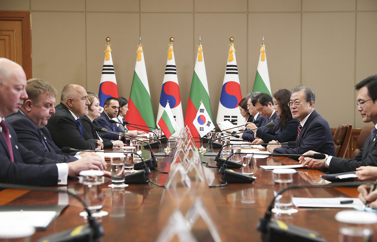 문재인 대통령이 27일 청와대 본관에서 보이코 보리소프 불가리아 총리와 정상회담을 하고 있다.