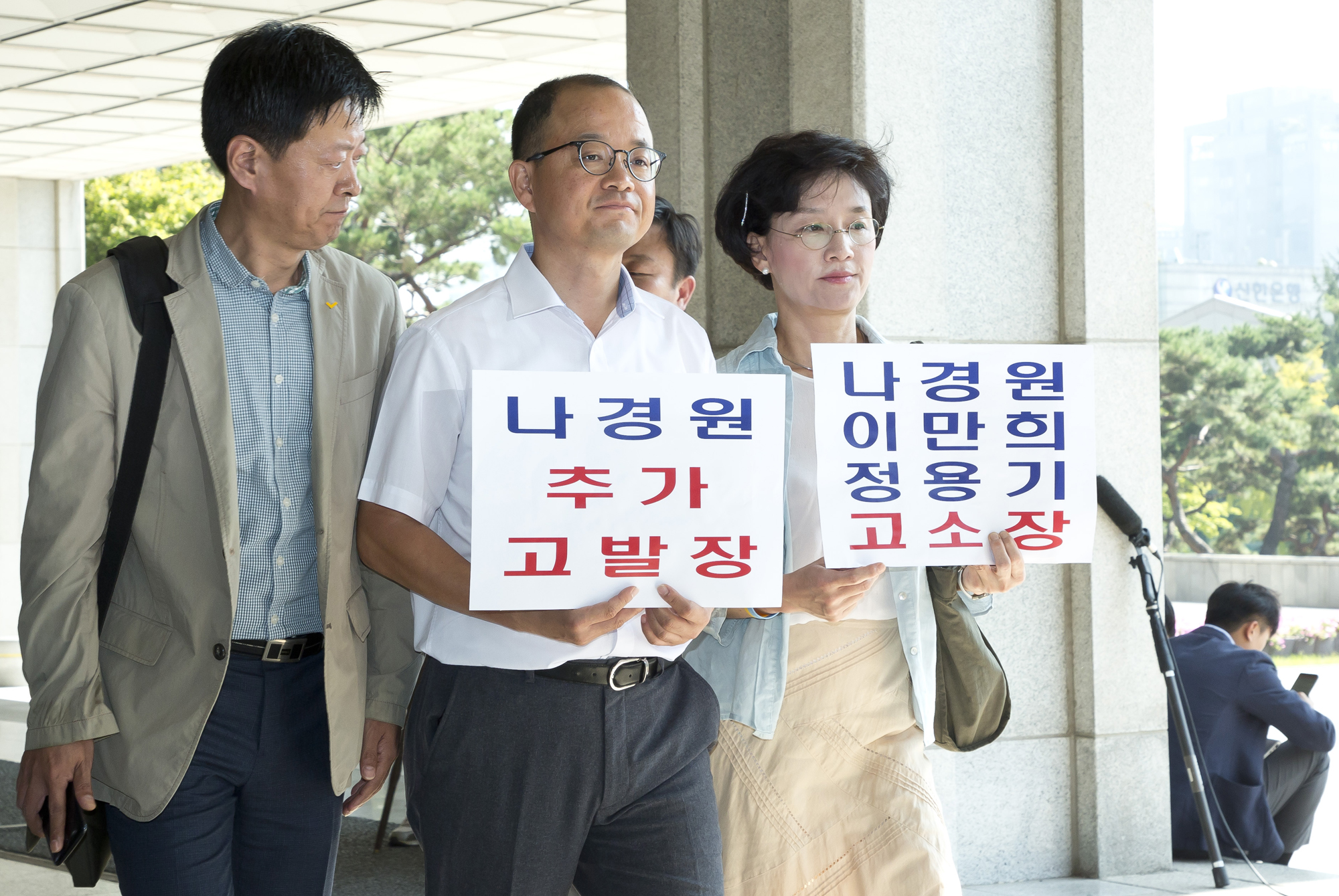 | 사진설명 | [eoimage=서울] 임준선 기자 =민생경제연구소, 국제법률전문가협회 등 시민단체 및 전문가 단체 회원들이 30일 오전 서울 서초구 서울중앙지방검찰청에서 나경원 자유한국당 원내대표, 정용기, 이만희 의원에 대해 명예훼손 및 협박 혐의로 고소장 제출에 앞서 취재진의 질문에 답하고 있다. 2019.09.30 eomaster@eoimage.com |