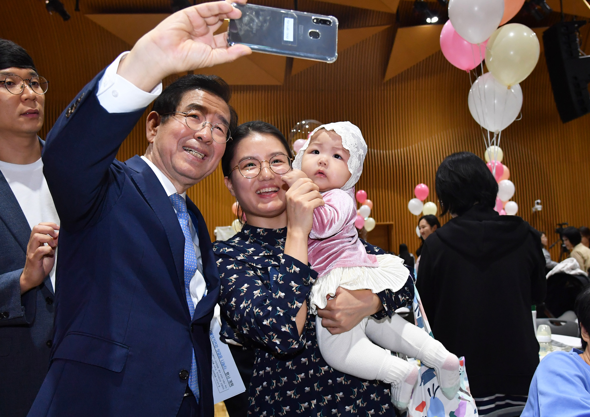 박원순 서울시장이 10일 서울 중구 서울시청에서 열린 '서울아기 건강 첫걸음 나눔터'에서 한 아이를 안고 행사에 참석하고 있다. 서울시 제공