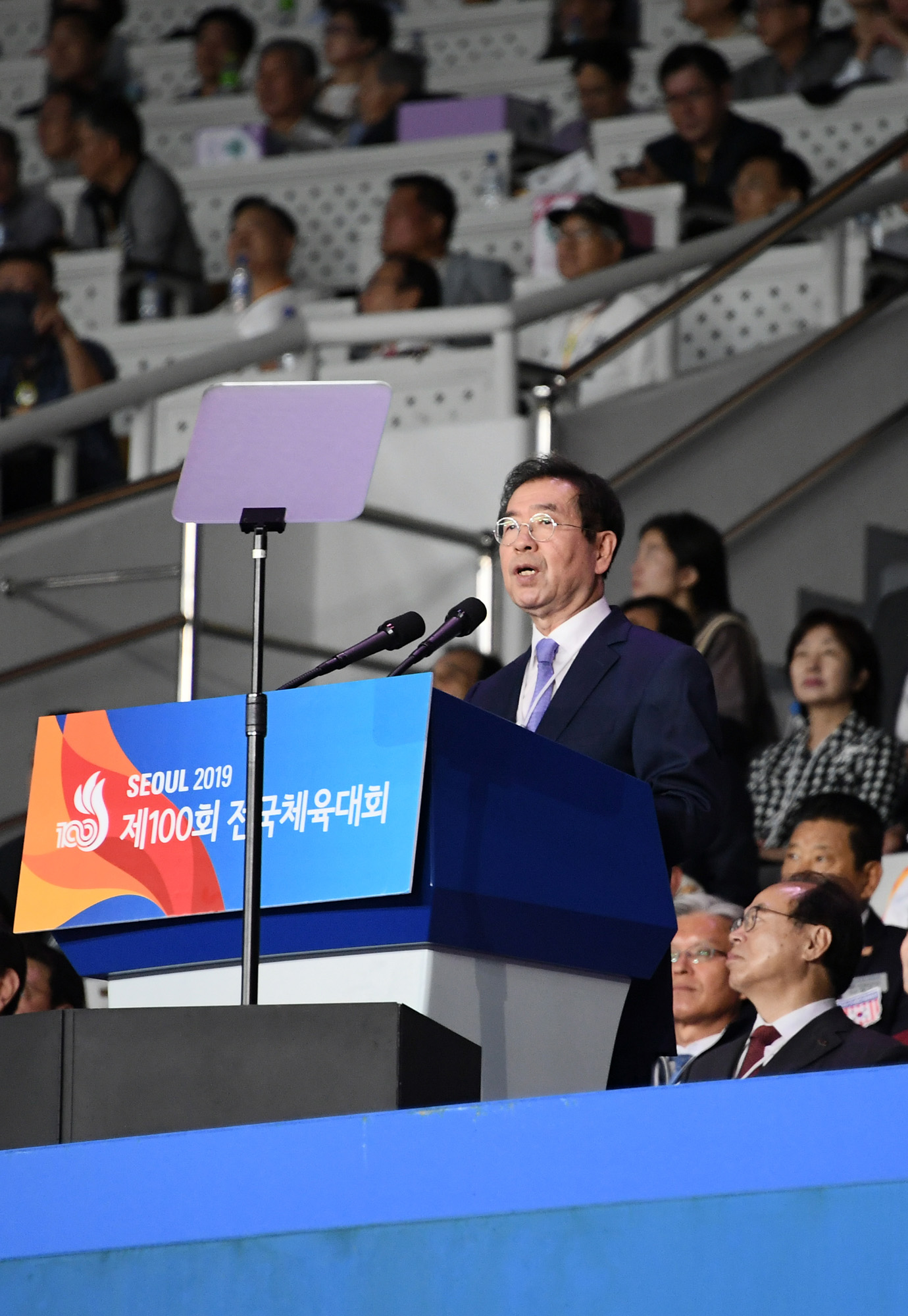 박원순 시장이 4일 오후 6시 30분 서울 잠실종합운동장 올림픽 주경기장에서 열린 제 100회 전국체육대회 개회식에 참석하고 있다. 서울시 제공