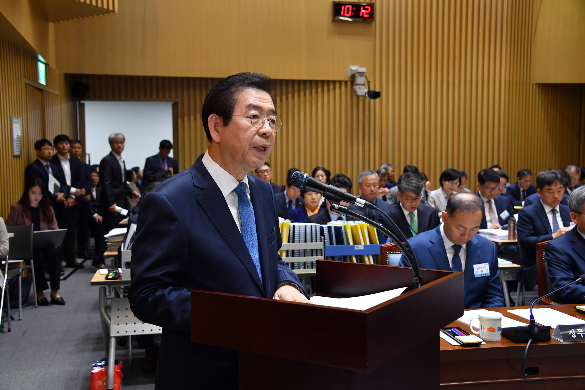 17일 서울 중구 서울시청에서 열린 국회 국토교통위원회의 서울시 국정감사에서 박원순 시장이 참석해 의원들의 질의에 답변하고 있다. 서울시 제공