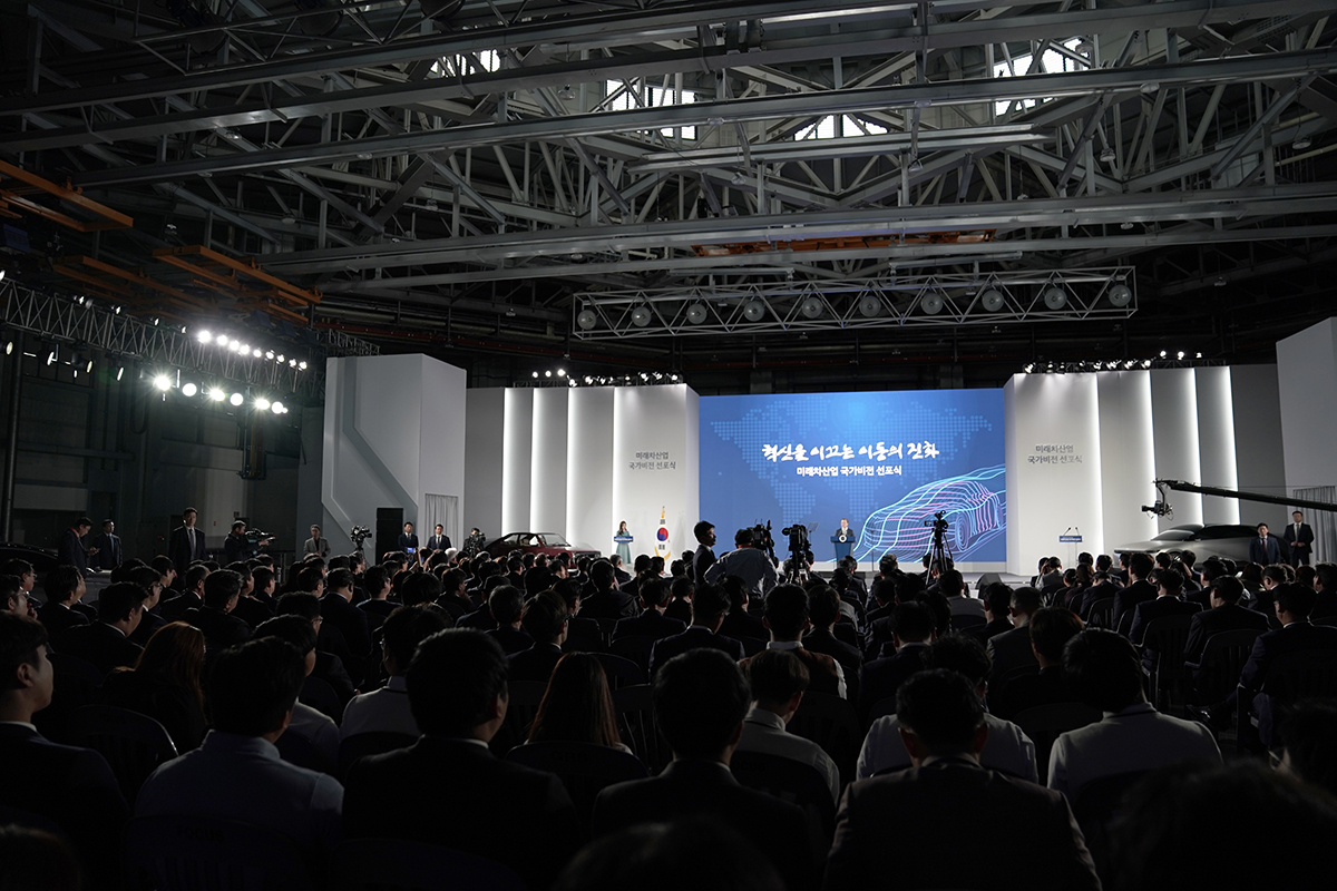 문재인 대통령이 15일 오후 경기도 화성시 현대자동차 남양연구소에서 열린 미래차산업 국가비전 선포식에서 발언하고 있다.