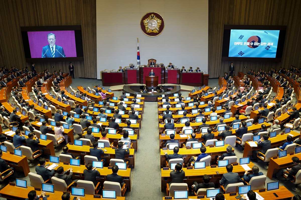 문재인 대통령이 22일 오전 서울 여의도 국회 본회의장에서 2020년도 예산안 시정연설을 하고 있다.